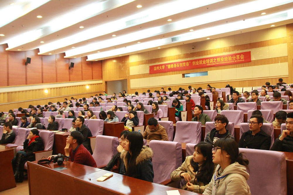 12月5日下午,由漫画柜 团学创业就业部与温大创业协会联办的“德修身&创青春”创业就业培训活动之创业经验分享会在育英图书馆二楼学术报告厅如期举行。此次分享会邀请了温州东帝工业设计公司总经理蔡良选先生、温州实力科技有限公司总经理陈小飞先生和温州左岸工业设计公司总经理黄松江先生,由漫画柜 学生科辅导员杜茜主持。三位创业成功人士前来分享他们的创业历程,众多温大学子慕名前来参加此次活动。讲座伊始,蔡良选先生以自身经历分享了自己艰辛的创业路。从一开始承载着梦想的出租房,到现在的大公司。蔡总一路上碰到了各种磨难,但是都没能打退他一颗坚定的创业心,更是告诫同学们要学会坚持,因为曙光总是在接踵打击之后的,我们不能轻言放弃。紧接着是陈小飞先生的创业历程,从第一单的尴尬,从艰苦的创业初期,陈总分享了他的人生信念:我们要学会尊重每一个人,我们要不畏惧每一次的失败,我们要让未来走在自己的脚下。随后,黄松江先生通过精彩的PPT,为我们展示了创业初期到如今稳定的每一次进步,告诉同学们在信息爆炸的时代,我们要抓住每一次机遇,敢于挑战,开拓思维,因为我们还年轻,我们有失败的资本。三位老总经验分享后,会场进入了互动环节,台下的听众们纷纷抛出当下尖锐的创业难题,总经理们都一一为同学们耐心解答,还为同学们提供了自己公司选拔人才的标准。希望同学们能够更好的学好专业知识,为未来铺路。本次丰富精彩的创业经验分享会,让同学们进一步了解了创业途中会碰到的一系列问题,更让同学们懂得了在创业的路上,我们应该做什么、怎么做和如何做。(通讯员:卢梦婷,摄影:刘炳言 )