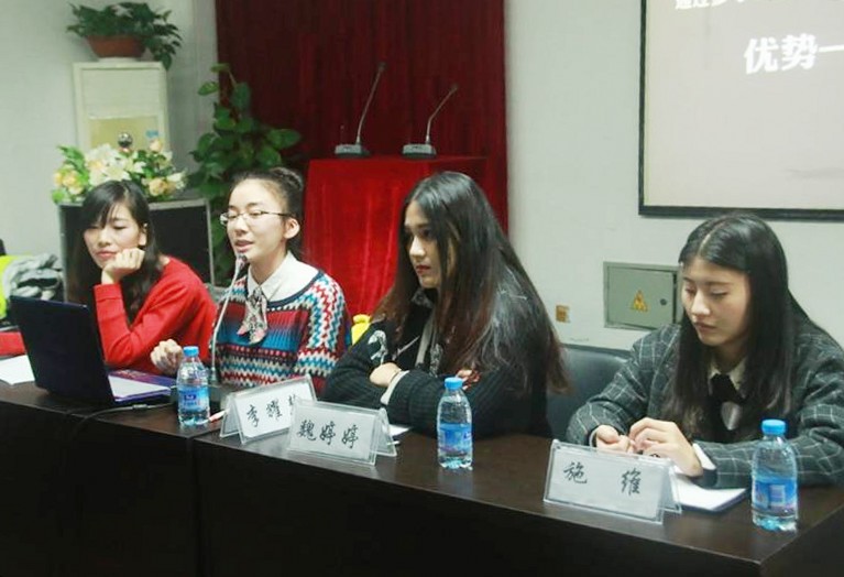 2014年11月13日 漫画柜 “‘艺’起分享”艺术大赛获奖经验交流会在美院2B4001举行。此次活动由院学风纪检部主办,他们邀请了去年在省级以上学科竞赛中获奖的四位同学来传授经验、分享感悟。她们分别是获“真皮标志•石门湾杯” 中国鞋类设计大赛优秀效果图奖的汪素影,荣获“第十届可可尼杯中国国际女装设计师大奖赛 ”入围奖的魏婷婷,荣获“中国OOH青年广告创意大赛” 优秀奖的李耀慧,荣获“2014年浙江省大学生艺术节美术比赛” 一等奖的施维。美院大一新生积极参与了此次活动。