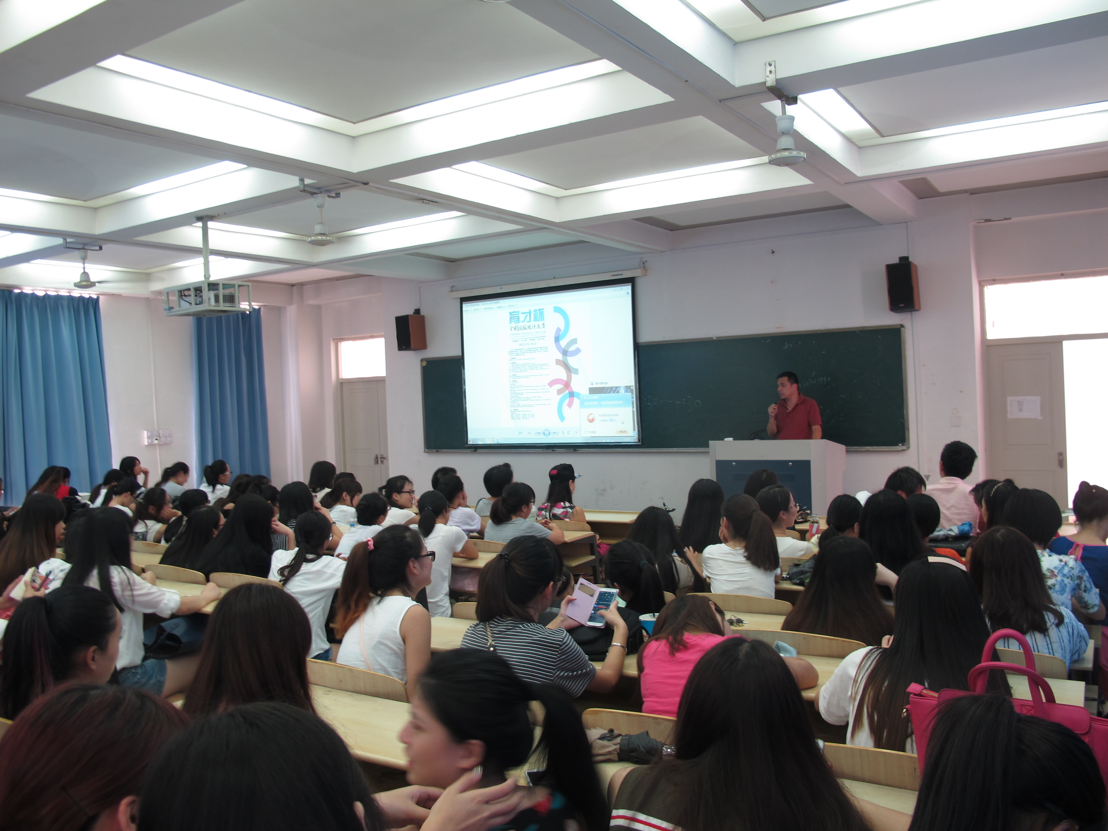 2014年9月28日下午14点,漫画柜 在3A201召开“育才杯”全国校服设计大赛动员大会,学院党总支书记郑彩莲出席动员会,服装系全体师生共200人多参加了此次会议。会议由服装系主任陈明艳主持。