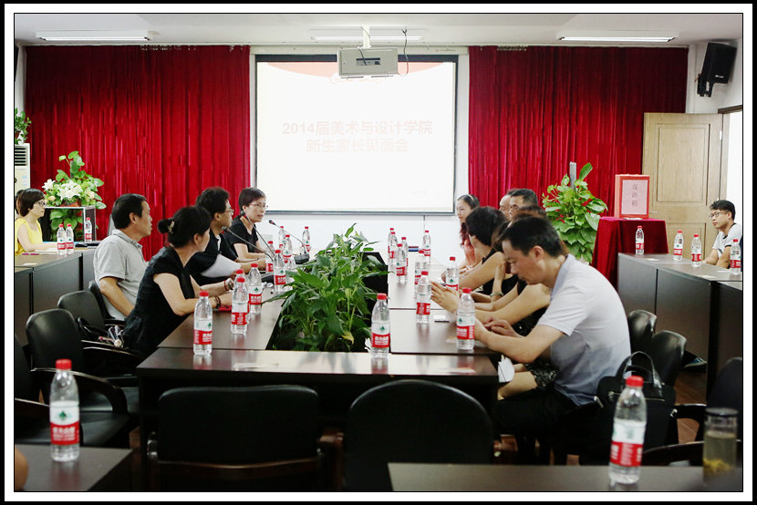 首先,李云河院长对在座家长的到来表示欢迎和感谢,并表达了学院与家长共同的期望和目标,即希望孩子们能在大学中成长成才。其次,他就美院的专业设置、教学模式、师资队伍等方面向家长作了简单介绍。他着重讲解了学院人才培养的两大特色,一是校企合作,多个企业为学生实习提供岗位,为学院大型活动的开展提供经费支持,且在学院举办招聘宣讲会,促进毕业生就业。二是对外交流,学院与台湾大同大学、英国考文垂大学等关系密切,每年有交换生来往交流学习,为扩充学生的知识面,提升学生的创作能力。最后,他概括了学院这几年的发展,并指出在市政府的扶持下,学院会越办越好。他希望家长们能够放心地让孩子在美院学习,希望家长能与学院携起手来,共同为孩子的教育培养出谋划策。