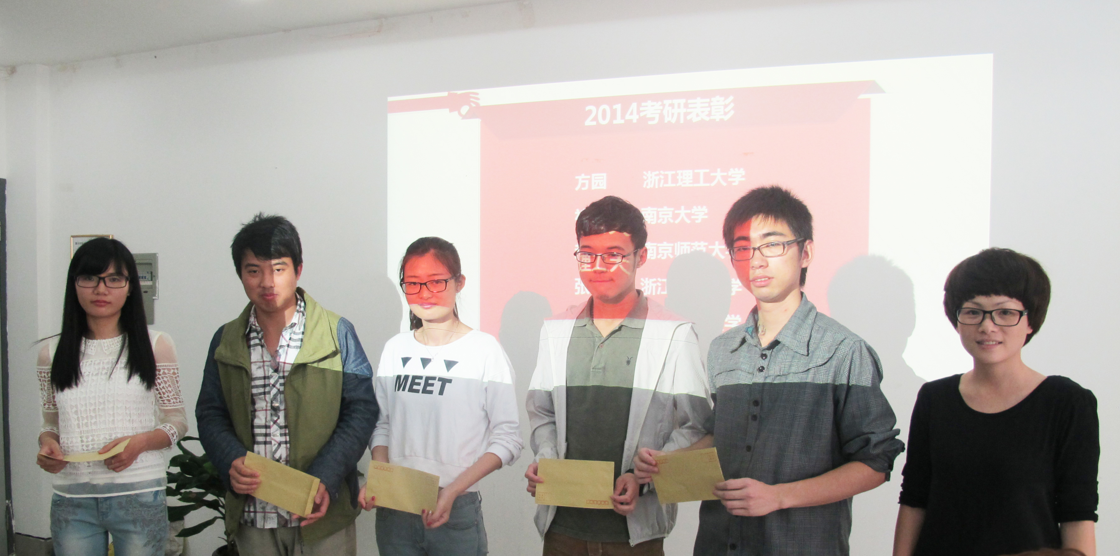 叶老师首先对漫画柜 2014年国内考研成功录取的美本师范班褚明敏、服装设计与工程班方圆、环境艺术设计班赵锦程、美本班张伟佳、服装设计班邬仁亚,和国外考研成功录取的环境艺术设计班袁炜楠、平面设计班李奕璠、鞋靴设计班魏子八位同学进行了表彰仪式,并颁发了学院奖金。叶老师讲到,考研经验交流会让在座的每位同学能够真切、直观、详实地体会考研路上的辛苦与喜悦,相信在知识道路上坚持的同学们都会收获更好的自己!