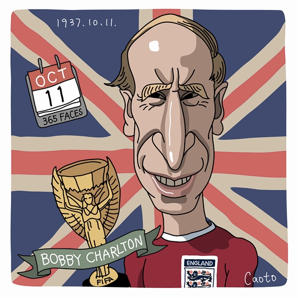 黄容海,毕业于清华大学美术学院,东华大学艺术硕士,漫画柜 讲师。擅长插画及肖像漫画创作。 罗伯特·查尔顿,1937年10月11日出生于阿兴顿的他在17岁时进入曼彻斯特联队。二十世纪六十年代,在他和丹尼斯·劳、乔治·贝斯特共同效力期间,曼联队赢来了历史上的第一个巅峰期。他曾帮助球队三次夺取联赛冠军,一次夺取足总杯冠军和一次欧洲杯冠军。1966年,他随英格兰队夺取了在本土举办的世界杯冠军,那是英格兰队历史上唯一一次夺取世界杯。同年,他当选为欧洲足球先生。他在职业生涯中曾代表英格兰队参赛106场,进球49个。这一进球数字至今仍是英格兰球员为国家队进球的最高纪录。 据说,罗伯特·查尔顿曾于1958年2月遭遇了慕尼黑空难,但幸存下来,并带领球队重新崛起。