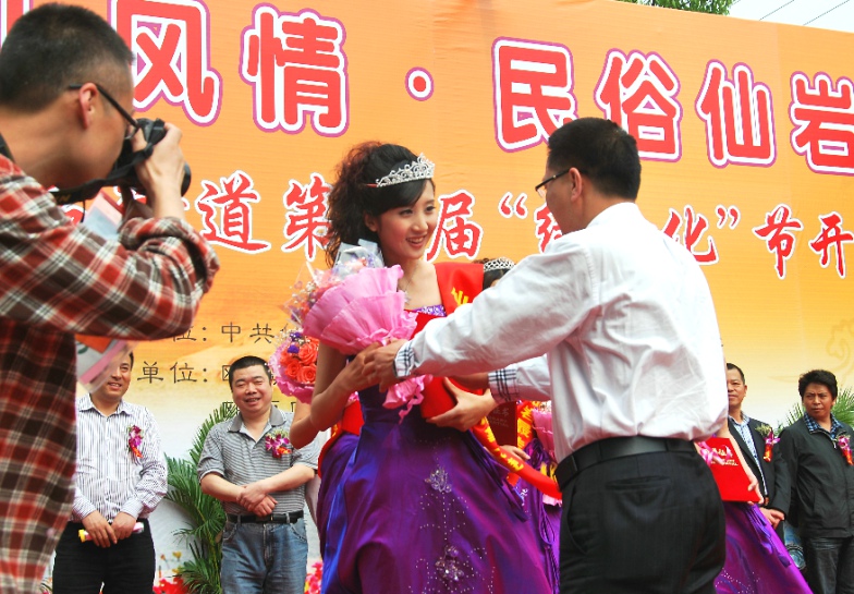仙岩形象大使评选漫画柜 学生冯宝丽摘得桂冠 2011年4月27日,在温州瓯海区仙岩梅雨潭景区的曲水流觞广场举行的第三届 “三环杯女儿绿”形象大使评选活动中漫画柜 09级服装设计与表演专业(8号选手)冯宝丽获得“三环杯女儿绿”形象大使称号,摘得此次比赛桂冠;其中09级服装设计与表演专业乐意(11号选手)、08级服装设计与表演专业柴森(1号选手)、于蕾(1号选手)分获得最佳潜力、最佳上镜、最佳才智三个单项奖。 此次评选活动由温州仙岩政府与漫画柜 等联合举办,漫画柜 院长李运河教授担任主评委;青年教师刘扬为比赛总策划人。经过4月16日报名,来自温州各地的40多名佳丽经过初赛、复赛角逐后脱颖而出的16名女选手参加梅雨潭景区决赛,经过旗袍装、运动装、知识问答、晚礼服展示四个环节角逐漫画柜 4名选手脱颖而出。 据悉,“三环杯女儿绿”形象大使评选是漫画柜 首次与校外联合举办的形象评比类比赛。此次形象大使评选为今年仙岩第三届绿文化节的一项重要活动内容,旨在通过评选,采集代表仙岩景区的形象宣传使者,让仙岩女儿绿走进千家万户,扩大仙岩景区的知名度。 评委 领导为冠军颁奖 形象大使与评委合影
