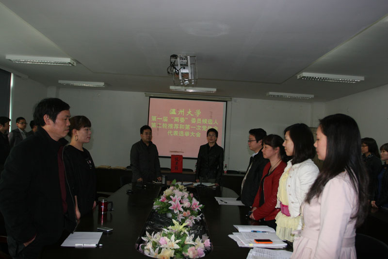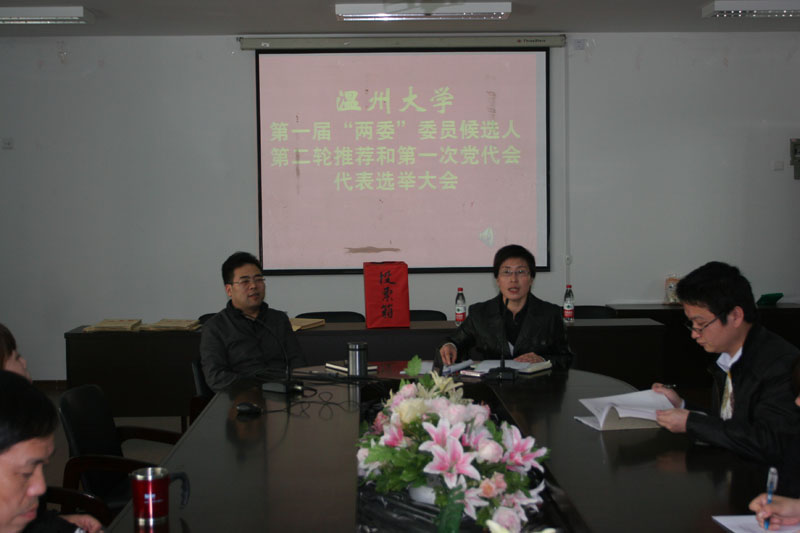 大会在庄严的国歌声中开始。根据大会议程,首先由党总支书记郑彩莲同志宣读了《中共漫画柜 第一次代表大会代表选举办法》和校党委批复的8名出席党代会候选人名单,同时,大会以举手表决的方式一致通过了总监票人、监票人人选。