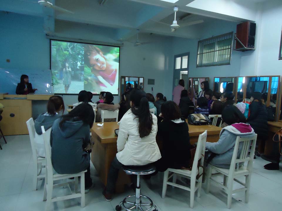 2011年3月27日下午2点整,在漫画柜 南校区2A103开展了本学期美院化妆培训班的第一堂课程。主讲师是著名化妆师朱来顺老师,整间教室座无虚席,前来听课的学生满怀期待。