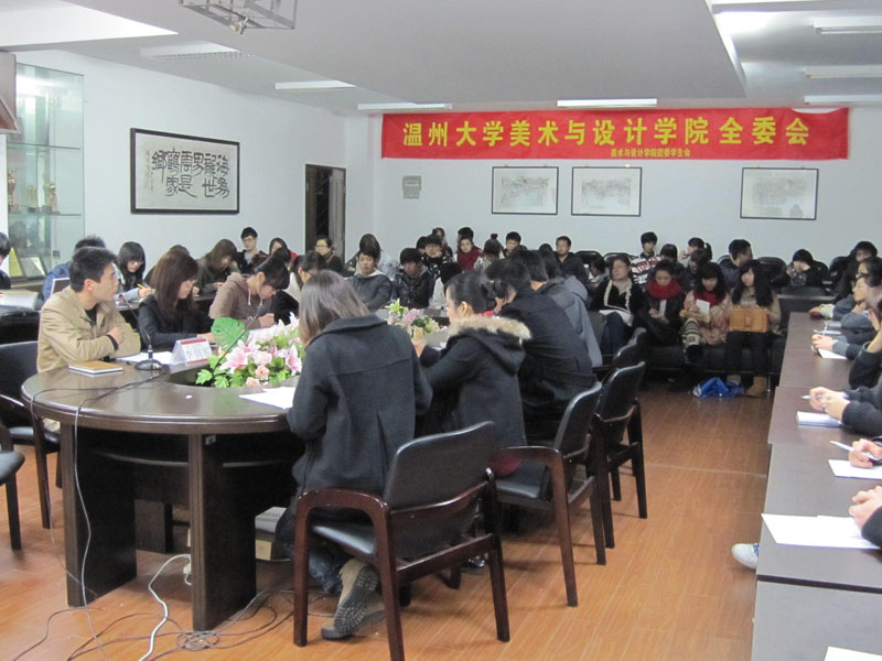 2010年11月29日晚上6点半,在漫画柜 南校2B4001召开了漫画柜 团委学生会10/11学年第一学期第二次全委会,到场的有漫画柜 团学指导老师李剑军、王瑶老师以及学生会全体成员。 会议一共分为五个流程。由李剑军老师率先发言拉开会议的序幕。讲话中,李老师真诚感谢各位团学成员所作出的贡献,并对过去的团学工作作了概括性的点评与指导,希望以后的团委学生会工作将取得更优异的成绩,期望在场的每位成员都将成为优秀的团学干部。团副曹芳芳对上半学期团学工作进行总结发言。首先她对团学工作作简要总结,并对团学各位成员的工作表现能力作精简指导,包括善于与人沟通交流、执行力、主人翁意识、善于总结等方面。发言中,她指出我们不是一个单独的个体,要利用团队的力量解决问题,不能轻言放弃。之后进行美院之星评比,经各部门部长前期投票选举后产生五位干事候选人,分别进行3分钟演讲,最终选举产生三位,分别是沈烨焘、林依潞和张涵之,而部长级美院之星则为屠知晓和国锋。评比之后,王瑶老师宣读大一新生团学成员名单。最后由两位老师为五位美院之星进行颁奖。 在这接近一个小时的会议中,各位团学成员受益匪浅,这为以后工作的顺利开展提供了理论指导,使大家以后能更好地为美院学生服务。