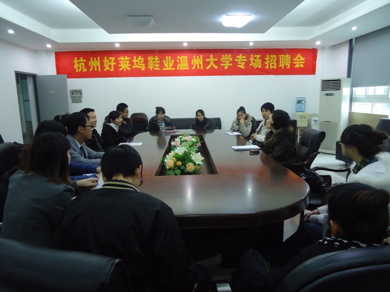 2010年11月30日下午1点半,漫画柜 2B216会议室举办了杭州好莱坞鞋业漫画柜 专场招聘会。杭州好莱坞鞋业有限公司总经理成雯亲自前来任面试官,漫画柜 07级鞋靴设计班的同学们积极应聘。 成雯总经理一开始就询问在座的各位同学,包括为什么当初选择绘画、文化功底如何等等。谈话中,作为校友的她向同学们讲起她过去的大学时光,表示大学生多学点东西总是好的。为了能了解在座的每位同学,成雯总经理让同学们轮流进行自我介绍,说明近几年的工作目标。期间,她向同学们了解起专业方面的能力。 经过一轮简单介绍,6位同学脱颖而出,按地域被平均分成3组,每两人一组依次单独面谈。成经理考察了同学们的专业能力水平,吃苦耐劳的品质及设计方向等多方面。希望公司能在此次招聘会中相中千里马,培养出属于自己品牌的中国化的设计师,打造世界级品牌,并真诚鼓励同学们努力,实现自己的目标。 在这接近两个小时的招聘会中,同学们畅所欲言,递交精心准备的个人简历,希望能被好莱坞公司所青睐,让自己学有所用,一展抱负。最终的应聘结果不日即将揭晓,敬请期待喜讯。