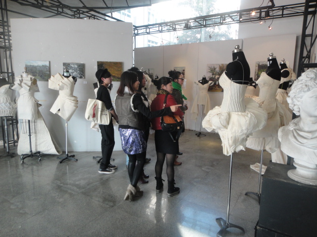 2010年11月27日星期六下午2:30,在美院2B一楼大厅里,漫画柜 主办了“嫁依工坊杯”2010漫画柜 第三届服饰艺术造型设计竞赛(美院“赛季风”之一)初赛。 此次初赛由美院服装系承办,新感觉(温州日报报业集团)协办,温州“嫁依工坊”婚纱坊赞助。评委团则由“嫁依工坊”的2位设计师及漫画柜 立裁老师魏静、陈明艳、叶茜和陈莹老师组成。该活动得到了漫画柜 服装系的大力支持;为此,美院还特别成立了“服装立体裁剪”教学团队,从而能更好、更全面的指导学生。 50余件参赛作品都是由参赛选手从最初停留在纸面的设计手稿,经过反复修改雕琢,最终使用白坯布,使其成形于人台之上,展示其或华丽或典雅或奔放的霓裳魅力。评选中,评委们手握35张贴纸花朵,细致而深入地欣赏着参赛作品,经过简略的讨论和慎重的考虑后,将神圣的每一票贴到所青睐的作品上。那犀利的眼光和独特的见解背后,是评委们对各位选手的肯定和激励。最终,39位选手在此次比赛中脱颖而出,成功晋级决赛。在此也祝贺这些晋级的选手能在决赛中大放光彩,绽放对美的创造力与对艺术孜孜追求的精神。 此次比赛中,不仅积极响应漫画柜 “以赛促学”的宗旨,更使漫画柜 浓厚的学风再上层楼,使服装学子们在比赛中不断汲取知识,飞速成长。当然,此次比赛也让其他莘莘学子大饱眼福,充分感受有人群的地方就有美,有生活的地方就有艺术。