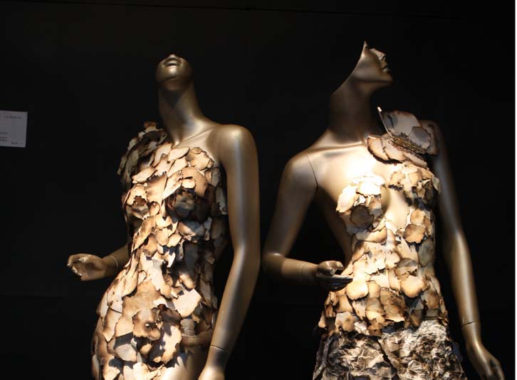 10月21日,主题为“多材多义”时尚概念艺术的课程展暨现场品鉴沙龙在漫画柜 一楼展厅成功举行。分别由07服装设计和07瓯服装设计与工程班创作完成,共展出了二十余组时尚艺术作品。学校教务处督导组郑健、黄根荣老师,学院领导郑彩莲书记、舒湘鄂副院长、李运河副院长饶有兴致地参观了展览,参加此次现场品鉴沙龙还有教学科老师、各系的教师代表以及服装系各年级学生。 本次展览第一次以时装展示设计课程为依托,进行跨界思维的时尚艺术创作,在国内院校也尚属首次。通过品鉴沙龙的形式,在红酒与音乐的背景交织中,以概念的展示手段体现创意时尚的现代生活理念与方式,运用不同的材质语言来阐述“时代美学”的真谛,让艺术时尚跨界无处不在。沙龙现场,舒院长分别从社会、人文及美学的角度来点评学生的作品,并指出很多形式美的表现手法,学生受益匪浅;李院长表示这种课程形式可以让学生在校期间充分挖掘创意潜能,拓展思维,能更快的适应不断变化的社会和市场的需求;郑书记也表示将课程展做成沙龙的形式很有新意,也带来了强烈的学术氛围。现场气氛热烈,陆续到场的将近300多名师生沉浸在本次时尚艺术沙龙之中。校督导郑健教授在参观展览后也很有感触,他表示应该要多发扬此种形式的课程展,让学生更有激情的上好每门课程。 该课程的指导老师为叶茜,她借鉴法国的时尚艺术思维提出了“多材多义”的设计主题,为Fashion Art的创作提供了广阔的空间,激发了学生更多的想象力和创造力。同时借与时代广场首次合作为契机,以“后低碳时代”的理念,要求学生进行大量的环保造型和材料上的探索与尝试。 温大美院服装系在全国率先将展示设计作为一个专业方向发展,并通过多次专业的展览引起了时装界的广泛关注,“希望此次具有实验性的时尚概念艺术作品能够为业内带来全新的创意体验,未来与历史、创新与传统、时装与城市,一切都在互相碰撞、振荡,直至共鸣。”叶茜表示。 课程展将持续到10月27日。据了解,此次展览评选出的优秀作品将在温州时代广场风尚艺术节时进行展出。本次获得金奖的同学还将额外获得vivisisi时尚工作室提供的学业赞助。
