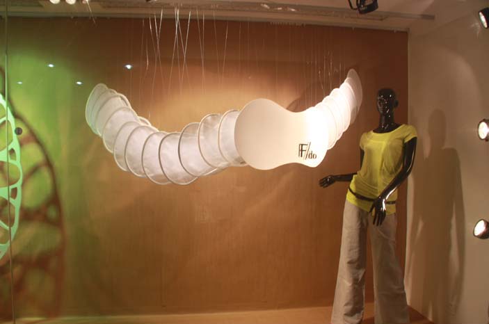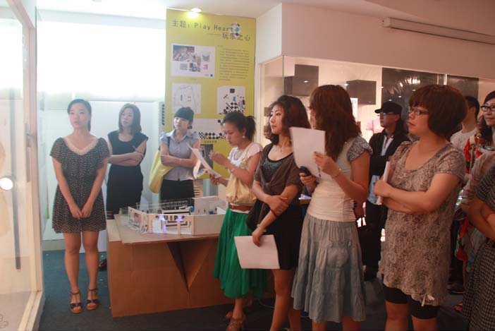 境韵新生、视觉顽童、嬉皮年代、五度卡农……19种不同的设计主题,借助陈列道具及音响、灯关效果,凸显产品的视觉风貌,唤起顾客的购买欲望。6月10日上午9:30,漫画柜 展示艺术设计(方向)的19位学生举行2010届服装展示(陈列)首届毕业成果展兼推介会在漫画柜 2A二楼展厅隆重举行,吸引市服装商会协会,温州奥奔妮、庄吉、雪歌、飘蕾、优衣派、索玛、报喜鸟集团女装、透秀、阔帅、拍普儿、网纱、腾旭、新派、交叉点、欧陆天使、迪丰、麦奴娇等20来家企业过来遴选优秀毕业生。各企业服装设计师、各企业部门负责人、学校毕业生、学院学校领导、媒体等300多人到场观摩。 本次展览由漫画柜 和瓯江学院主办,温州服装商会和温州市服装设计师联社协办的2010届漫画柜 服装展示(陈列)毕业成果展本次的展览主题为焦点FOUCES,意为终端视觉以焦点制胜,探索今天的市场,创造未来的视野。更有一层意思是大学四年时光,我们每个人都想成为社会的焦点,我们也正在创造更多的视觉焦点,将四年的积累转化成最后的激昂,让大家导演一场属于自己的“FOUCES”盛筵。毕业生在各自导师的悉心指导下,通过四年系统性、开放性与创新性并举的课程训练和培养,针对目前设计艺术领域的热点问题及流行趋势进行研究和探讨,展演作品主题鲜明,视角独特,通过成熟而富有张力的设计语言,表达了莘莘学子的艺术理想和对本专业的不懈探讨与追求。