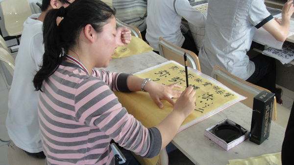 近日,漫画柜 主办的每周一课书法培训素质拓展班与往常一样在漫画柜 教学楼2B308准时开课。漫画柜 07级优秀学生何玲珑同学担任执教,为来自全校各院学员40余名书法爱好者拉开书法世界的大门。 从开班至今,何玲珑同学细致的讲解早已赢得学员们的一致欢迎与肯定。且何玲珑同学亲切和煦的语言更在授课时无形中拉近了老师与学员的距离。墨香阵阵,老师与学员之间诸多互动,交流热切,一派和谐的氛围。书法培训不仅让众多同学学到了书法的技法,更是在练习过程中修身养性,感悟中华精粹的深远魅力。不少学员作为首次零距离接触书法的初级学者,在经过几周的潜心训练,通过大量的书法练习,完成了由量变到质变的过程,不少优秀作品已脱颖而出,喜获丰收。 书法作为中国的国粹,其历史之渊源,内容之精深,无不值得我们进行深入挖掘。作为当代大学生,作为炎黄子孙,我们有义务有权利将之传承于今后,传播于世界,愿更多的人重视书法这一国粹,珍惜书法这一中国瑰宝。