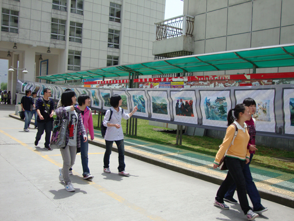 2010年4月28日对同学们来说是再普通不过的日子,与往常一样的早起赶上课、下课冲食堂。然而今天,许多同学却停下了匆匆的脚步,被一些创意独特的鞋靴、服饰等吸引,纷纷驻足在温大生活区A区,欣赏由温大漫画柜 主办的“艺术漂流”巡回展览。 明媚的阳光中带着焦灼,照射到展品上却犹如闪烁的镁光灯,告诉你:看这里。看这里!对!看的就是这里!无论是色彩缤纷的裙装、英气高贵的宫廷装、纯白的立体裁剪作品,或是结构严谨的环境艺术建筑模型、无限延展空间的立体构成作品都找到了自己的大批拥护者。而创意鞋靴设计作品更是打破人们的常规思维局限,使人眼前一亮。更有荣获全国鞋靴铜奖的“战国策”震撼全场。沿着展区向前走,入目的是整棚的速写作品。此时终于领悟,没有色彩的世界,纯粹的黑灰白也能无限生动,给你难以言喻的感动。再进去就是长长的艺术走廊。道路两旁挂满了数百幅师生作品。国画、书法以及篆刻了展示国粹的精华,引得参展的外国友人赞叹不已。浓彩重墨的油画、水彩自然是最受欢迎的,版画与木雕用其独一无二的形也争得个不相上下。共同点缀着艺术走廊,缺一不可。 “让美丽悄然流淌,让艺术华丽绽放。”此次艺术漂流第二站活动在学院老师大力支持下于美院大本营闪亮登场,并吸取第一站的经验与教训,可谓圆满成功,不仅为前来参观的师生上演一场饕餮盛宴,更获得院领导的一致肯定。 在此预祝艺术漂流在此后的几站中亦能举办顺利。
