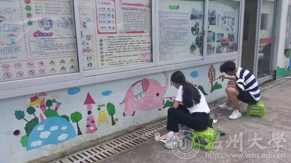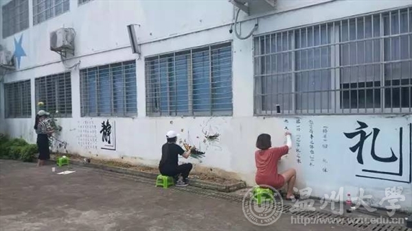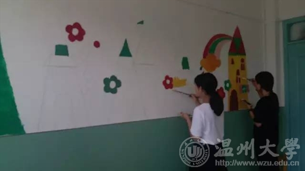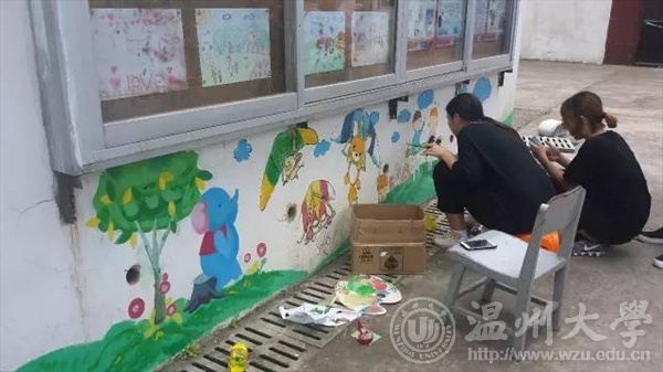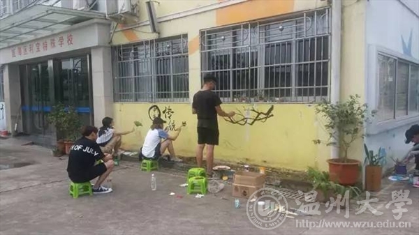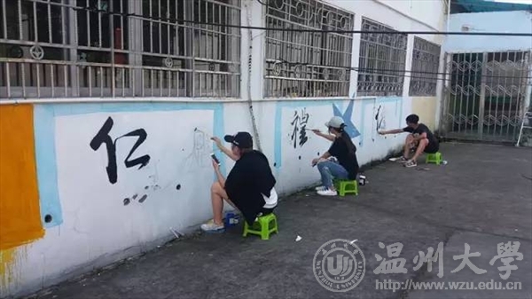 在温州利宝特殊教育学校,我们遇见了这群可爱又有点特别的小朋友们,在教与学中共同度过了一段难忘的时光。画画、写字、爬楼梯、玩游戏……我们走进他们的日常生活,传递爱与温暖,也收获坚强和希望。在学校负责人的委托下,我们对学校外墙和教室进行了墙绘装饰,队员们在炎炎烈日下手执画笔将空白的墙面变作美妙的图画,传播了中国国学“礼智仁义信,诚志学孝德”的传统美德,更有可爱的卡通涂鸦为小朋友们送去欢乐。
