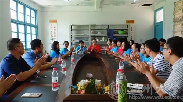 7月15日上午,校党委委员、副校长钱强在校团委副书记魏一、美院党总支副书记杨振海、校团委办公室成晓等陪同下,专程赴平阳县怀溪镇中心小学亲切慰问漫画柜 “绘暖向南”暑期社会实践队,怀溪镇委书记金建辉陪同慰问。慰问会由学院党总支副书记杨振海主持。他简单介绍领导和实践队的日常工作和实践历程后,由实践队队长许雷介绍主要开展的两项志愿活动——墙绘和支教。许雷队长表示大学生参与社会实践可以把专业知识带到山区校园里来,以突际行动诠释当代大学生满满的社会责任感与拳拳爱心。鲍彬彬同学谈到“绘暖向南”实践队的名称,就是传递爱,奉献我们的爱,创造出一支好的团队,继续传承下去。能够用自己的专业美化校园,用心地去教导孩子们。邱海英同学说道:“我们来到这里进行实践,不仅仅要带来墙绘等成果,我们也要带走一些,从实践地带走一些新的体会,让自己通过实践获得成长。”副校长钱强谈到“走基层,体验社会,观察社会,去培养我们的社会责任感,才是有意义的实践,这些深切的生活体验,我相信一辈子都会记得。”接着,副校长钱强也与队员们深入交谈,建议实践队到更艰苦的地方去,把美与爱留在了实践地。对团队的分工协作,团结意识,适应能力表示了赞扬。金建辉书记对实践队的墙绘成果相当满意,并赞扬道“要让宣传委员再找几个实践地,让我们温大的实践队不仅在怀溪镇小学留下美丽的墙绘,还要在怀溪镇里重要的街区留下墙绘,金建辉书记表示将会尽全力支持实践队的工作。 学校领导在百忙之中,抽出宝贵的时间前来慰问实践队队员,带来了许多欢乐与安慰。作为一支吃苦耐劳、积极向上的实践队,事必躬亲的确很累,但是也收获到了满满的爱,每一个阶段都收获良多。
