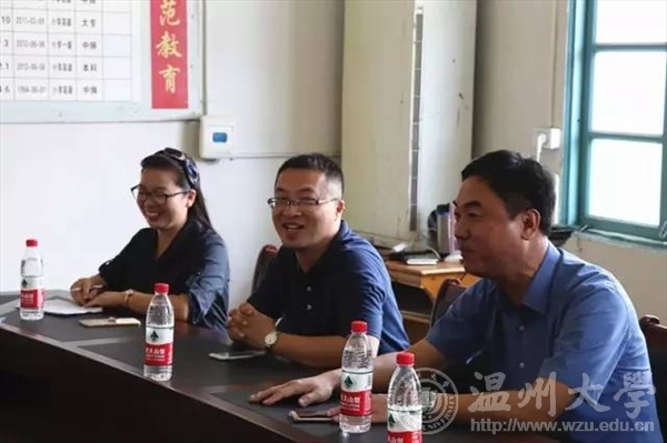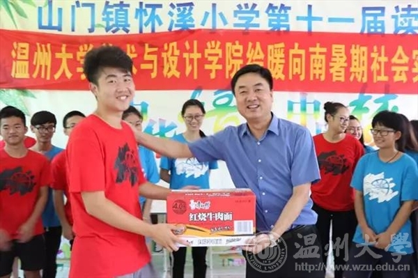 7月15日上午,校党委委员、副校长钱强在校团委副书记魏一、美院党总支副书记杨振海、校团委办公室成晓等陪同下,专程赴平阳县怀溪镇中心小学亲切慰问漫画柜 “绘暖向南”暑期社会实践队,怀溪镇委书记金建辉陪同慰问。