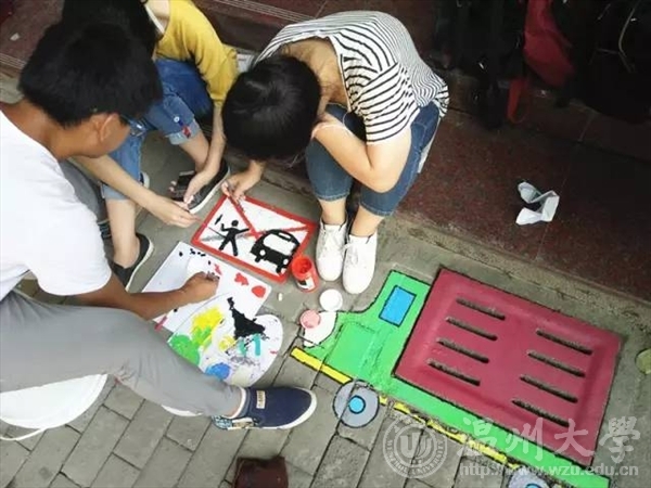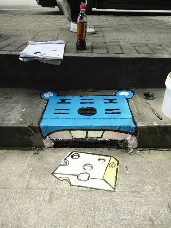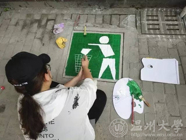 如果说青春是一首待谱的乐曲我愿与你一起演奏也许我们的青春没有那么多的华丽瞬间但这个夏天我们做了一件非常有意义的事艺绘,一起为城市文明添砖加瓦!五水共治,我们绘制2017年7月6日乐清市晨曦路 活动介绍:近年来环境问题越来越受到人们的关注,乐清市路政部门也非常重视保护环境,打出了''五水共治''的口号。艺绘实践队也以保护水资源、爱护地球、五水共治为主线,开展绘画工作,旨在引起人们的注意:地球只有一个,保护地球,保护水资源迫在眉睫。 走进乐清彩绘,推进五水共治,扬我温大风采。五水共治,我们用心绘制。 迎着朝阳,顶着烈日,阳光下的你,虽然酷热难耐,但手中的画笔却从未停息,乐清的城市文明在你的画中飘然流露。成果展示our paintings 一幅幅美丽的画作展现在街道两旁的下水道井盖上,看到这些原本影响市容市貌的井盖成为了一道靓丽的风景,我们感觉到付出的汗水没有白费。