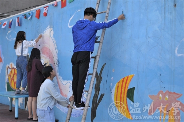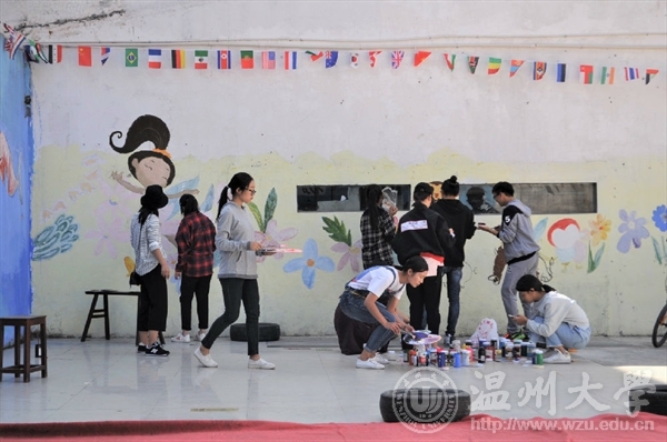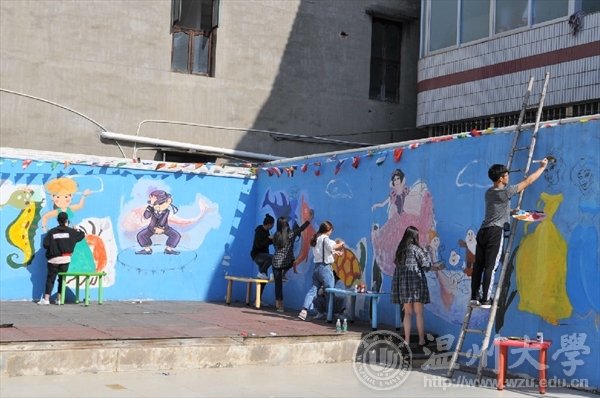 2017年10月29日,漫画柜 “艺家人”青年志愿者协会前往白门侨星幼儿园开展了墙绘活动。志愿者们经过大半个小时的车程终于到达终点站,踏入幼儿园发现,它并没有想象中那么现代化,墙上是被太阳曝晒过的稚嫩童画。刚到那里,志愿者们便开始着手准备,将颜料摊在地上,打水,洗笔……,有条不紊地进行着。随后每个人开始选自己要画的卡通人物,由于园长告诉我们,这是孩子们跳舞的场地,所以志愿者们也跟着主题走,上网搜集了许多可爱的卡通舞者,选好之后,二话不说就动起手中的水粉笔开始绘画,志愿者们先用铅笔打稿,用黑色颜料勾线,再上色。不一会儿,肉色的皮肤,粉红的裙子,精美的发饰,优雅的舞姿等便在蓝色的墙面上显现出来了。志愿者们大肆挥舞画笔,用嫩黄和天蓝颜色打底,在太阳底下让人看了温暖极了,太阳也愈演愈烈,志愿者们的头上也开始出现汗珠。上午的时间飞快地流逝,吃过饭后小憩一会,志愿者们便接着干活,同时又把墙面整体地刷了一遍,更突出了人物,再加上一些花花草草的点缀,整个围墙都漂亮醒目了起来。园长十分开心,志愿者们也很欣慰。快结束的时候,还有这边的上级领导来视察,夸奖了我们志愿者的工作成果,也给了一些有用的建议。本次活动开展的目的在于给幼儿园的小朋友们增添不一样的色彩,让他们在一个多彩地小世界里快乐成长、快乐学习,同时也锻炼了志愿者们自身的耐心和技巧,肯定了我们温大人的能力。此次活动让志愿者们收获了很多,早已疲惫的身体里面却是满满的幸福,虽然做的不多,但志愿者们把自己所学到的知识都应用起来了。同时,也希望我们志愿者点点滴滴的行动可以对社会的其他人带来感想,让越来越多的社会人士开始关怀心中的点点滴滴,给予需要帮助的人更多温暖!图/文:金 哲罗会慧董 悦