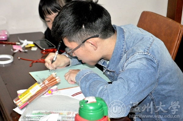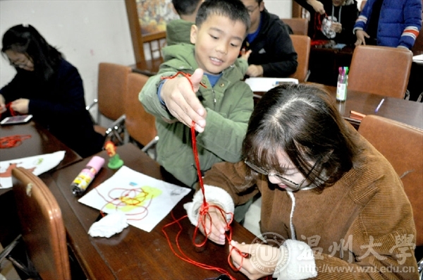 2017年12月9日,漫画柜 “艺家人”青年志愿者协会成员以及志愿者们准时来到了梅泉社区文化礼堂,进行了主题为“春节”的志愿活动。秦佳敏同学向小孩子们提问问题“春节有哪些习俗呢?”有的孩子说放鞭炮、贴对联、画福字,收红包……没错,还有挂中国结。中国结的编制没有那么简单,尽管步骤告诉大家,但一开始志愿者们和孩子们都连连“诉苦”难度太大,但不过一会儿还是有心灵手巧的志愿者学会了,并且还教别的志愿者打结,虽然中国结做的不太完美但代表着团结幸福平安的意义却丝毫没有减少。明年是狗年,当然少不了教孩子们画可爱的狗狗,孩子们为自己画的狗狗涂上了颜色还为它画了一个小房子。最后是写祝福语的环节,孩子们依旧很用心地给自己的爸爸妈妈写上祝福,有的写的是“爸爸妈妈你们辛苦了”,有的是“我爱你们”……字里行间流露出了对爸爸妈妈浓浓的爱意。