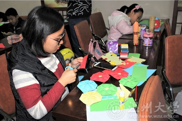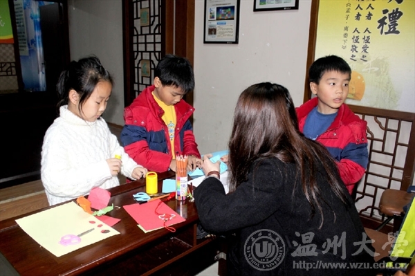 12月2日,在温大漫画柜 “艺家人”青年志愿者协会的组织下,志愿者们又如期来到了梅泉社区文化礼堂,开展志愿教学活动,为梅泉社区的小朋友们进行“中国风”主题授课。伴随着宛转悠扬的曲子,本次以中国风为主题的活动也就此展开了。首先,徐静同学向小朋友们提出问题“小朋友们想到中国风这几个字你们会想起什么啊?”话音刚落,许多小朋友们就积极地举起他们的双手回答,有“好吃的,好玩的,好看的……”紧接着徐静同学又向小朋友们介绍了许多关于中国风的传统活动和传统意境,例如,贴窗花、中国结、吃团圆饭、国画、小桥流水人家等等。借此引出了活动的内容,徐静同学先是让小朋友们和志愿者们画一张有气节的竹子,大家听后,随即拿起笔来作画,画好了还不算活动结束,接下来,小朋友们和志愿者们又开始做手工活动,折小鲤鱼和折绣球,一折一剪之间,无不体现着小朋友们和志愿者们的深厚友情。这时候,小朋友们和志愿者听说做好的的前几名的有奖品可拿,小朋友们和志愿者们立马充满了干劲。最后,由负责人评出了前几名,并颁发了羽毛笔等奖品,没有得奖的小朋友也得到了安慰奖。中国风,即中国风格,是建立在中国传统文化的基础上,蕴含大量中国元素并适应全球流行趋势的艺术形式或生活方式。它是一种中国独特的风尚,即中国元素,它给人一种感受:听到乐曲或者看到剪纸就会联想到中国元素、中国味道。本次活动的目的在于培养小朋友们和志愿者们的爱国意识,使中国风能够更广泛更持久地应用到各个领域。新时期、新气象,大家一起争做有中国特色的优秀青年吧! 图/文:金 哲罗会慧董 悦