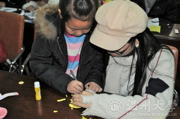 2017年11月25日,伴着微微的小雨,温大漫画柜 “艺家人”青年志愿者协会再一次来到了梅泉社区文化礼堂,进行了主题为“团结”的志愿活动。虽然今天小雨绵绵,但志愿者们的热情依旧,小朋友们的积极性也没有因冬天的来临而减少。这次活动首先开始的环节是你画我猜,分成两组进行,先由第一组画出所给出的词语,给下一组三秒钟的时间看,再由下一组画,最后给最后一组猜出词语。大家都很配合,快速完成,并准确猜出词语,获得相应的奖励。接下来,伴随着小黄人的的主题曲,大家一起看了一段小短片,目的就是希望小朋友们要像小黄人一样在困难面前团结一致不怕困难。接下来,为了加深印象,志愿者们便开始指导小朋友们在纸上画出可爱的小黄人。一个圆圆的身子,一条深蓝色的背带裤,酷酷的黑色镜框,看过小黄人电影的朋友对此一定不陌生。紧接着是突发奇想环节,有的小朋友在分发的气球上画小黄人,还有的小朋友把许多个小黄人推在一起,仿佛是一个能打倒巨大怪兽的超级英雄。最后一个是评奖环节,负责人选出做的最好的五位小朋友,给他们送上精美印章以及荧光笔。没有得到的小朋友们给予他们有趣的圆珠笔作为安慰奖。总之,大家都很满意。小朋友们的动手能力越来越好,与志愿者的互相协作能力也得到了相应的提高,他们的作品可能不是完美的,但他们的所有的作品都充满了团结的力量,让人温暖,给人力量。小朋友们和志愿者们一起完成一张画,一起折好一张纸,一起做一件事,一起欢声笑语,一起度过美好时光,这样团结的氛围让小朋友们感受到了团结的力量是强大的,这些力量也会给社会带去一份温暖和感触。 图/文:金 哲罗会慧董 悦
