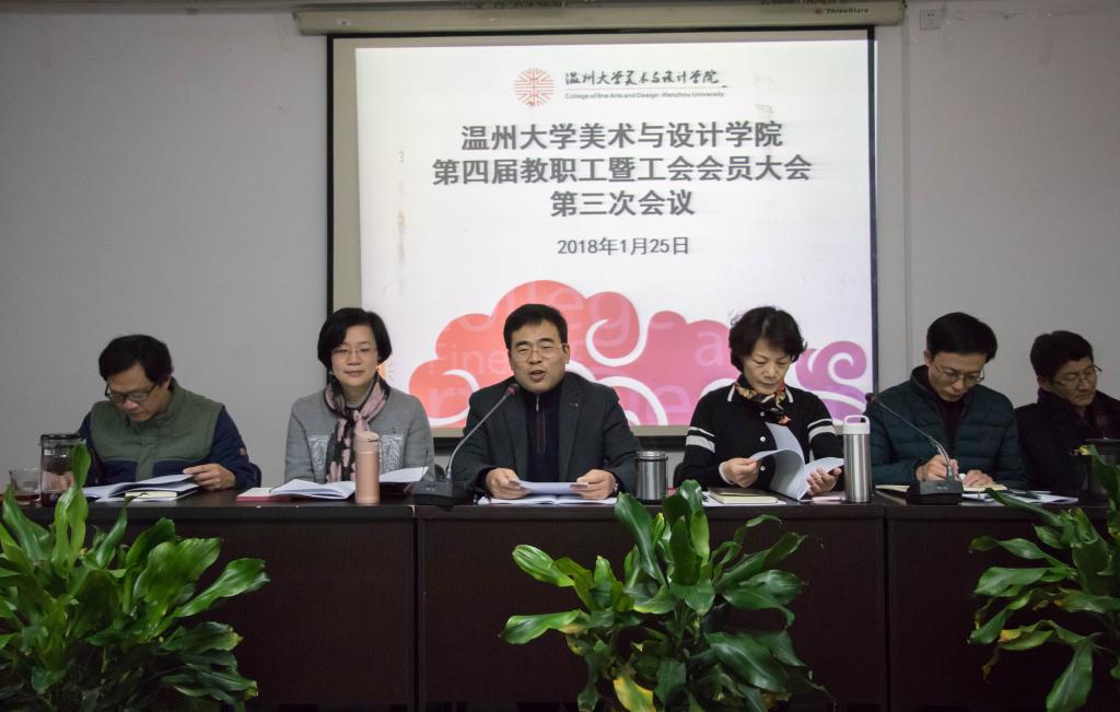 2018年1月25日下午,漫画柜 在2B4001召开第四届教职工暨工会会员大会第三次会议。学院全体教职工参加了大会,会议由学院党总支副书记杨振海主持。