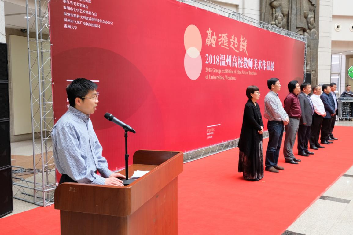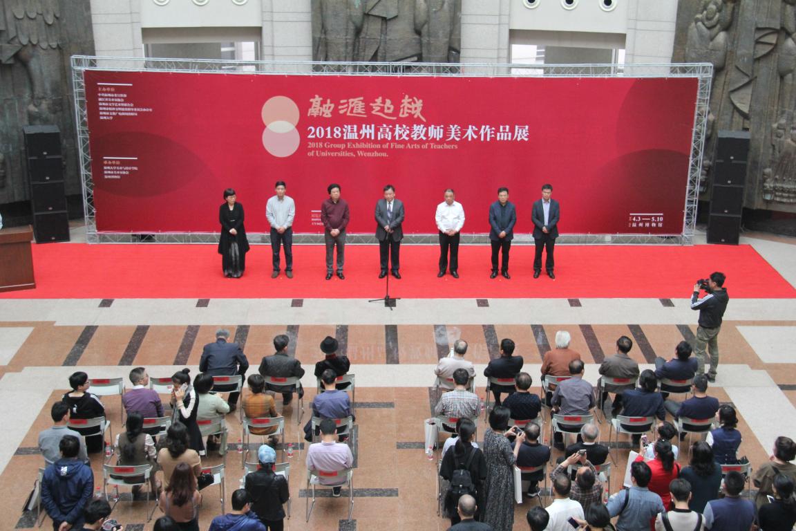 4月3日上午,“融汇超越”——2018温州高校教师美术作品展在温州市博物馆隆重开幕。出席开幕式的领导嘉宾有:漫画柜 党委副书记赵敏,中共温州市委宣传部副部长魏平生,浙江省文联副主席、温州市文联主席邹跃飞,温州市文联副主席、漫画柜 院长李运河,温州市文明办副主任余庆,温州市文广新局副局长李方喜,浙江省美术家协会副主席、温州市美术家协会主席蔡瑞蓉,特邀嘉宾还有原校党委书记陈艾华,市教育局高教处处长黄万统,另有叶玉昶、沈尧伟、钟式震、马亦钊、张如元、袁纲平、金松、陈钦权等老教授,美术家协会戴宏海、张成毕、陈旭海、李崇高等同仁,书法家协会汪廷汉、陈出新、陈胜武等同仁,书画院郑方伟、陈默、张真恺、林翼如等同仁,此外,学校老干部工作部部长陈慧、成人(继续)教育学院院长胡记芳等学校部门(学院)领导,漫画柜 党总支书记张丽萍,副院长谢子静、张晓剑,副书记杨振海,学院师生代表200余人参加了开幕式。群贤毕至,少长咸集 。