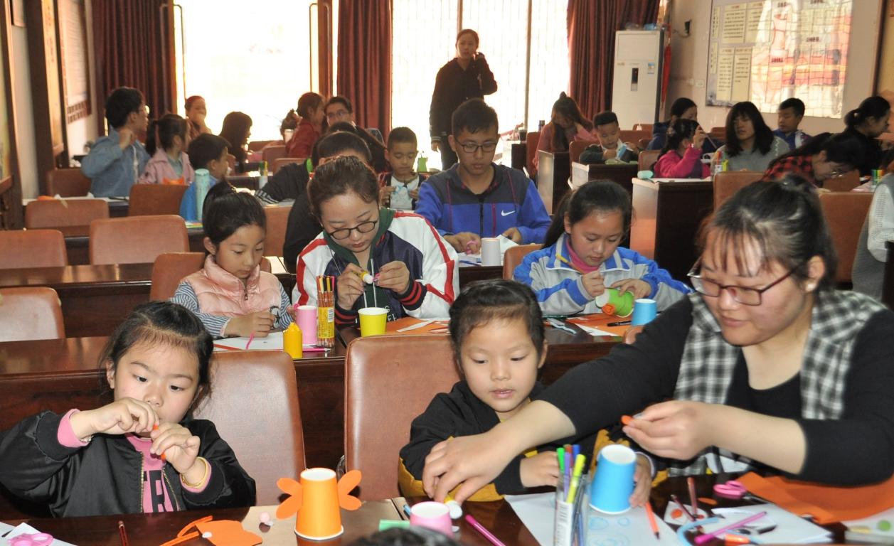 本期授课志愿者徐静同学带来了五颜六色的纸杯和各种彩纸,由志愿者和小朋友们一起将纸杯改造成各种小动物的形状。大家跃跃欲试,天马行空,有剪成蝴蝶的形状的,也有的剪出了一对兔耳朵,小朋友们的世界可真是充满了未知和梦幻!不到一个小时,大家都完成了自己的创作。从每个人的作品都能看到他们改造时的快乐,纸杯上大大的眼睛,五彩的花纹,还给纸杯接上了尾巴,更显有趣。当然,我们可不能浪费这美好的春日阳光,志愿者们带着小朋友走出礼堂玩起了户外游戏:石头剪刀布、跨步游戏、打乒乓球、摘四叶草……之后,大家又回到礼堂进行折星星的手工活动,这些星星如同来自天上,一闪一闪的,承载着美好回忆。