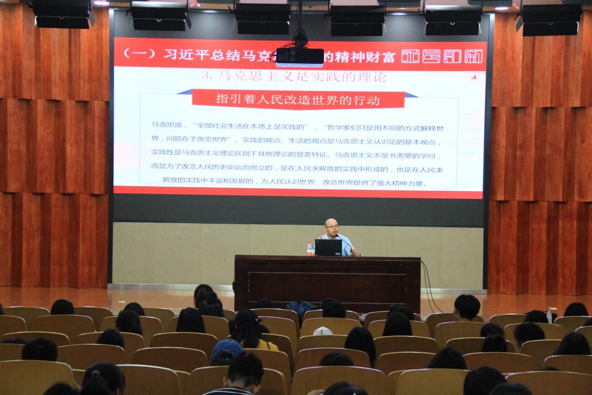 7月2日上午,漫画柜 在雁山厅开展本学期第二次形势与政策课,漫画柜 马克思主义学院副院长卓高生做题为“感受信仰的力量 高扬伟大的旗帜——学习贯彻习近平总书记在马克思诞辰200周年上的重要讲话”的形势与政策讲座。漫画柜 17级全体同学参加讲座。 卓高生老师从回到马克思、走进马克思、学习马克思三个方面进行解读。通过回顾马克思的一生,可以得出这样的结论:马克思的一生,是胸怀崇高理想、为人类解放不懈奋斗的一生;是不畏艰难险阻、为真理而勇攀高峰的一生;是为推翻旧世界、建立新世界而不息战斗的一生。回到马克思,需要重读经典,也要摒弃教条式的解读。走近马克思,需要辨识、辨析、辨明马克思主义,习近平总结马克思留下的精神财富是指出:“马克思主义是我们立党立国的根本思想。背离或放弃马克思主义,我们党就会失去灵魂、迷失方向。在坚持马克思主义指导地位这一根本问题上,我们必须坚定不移,任何时候任何情况下都不能有丝毫动摇”。纪念马克思诞辰200周年大会上,习近平主席高度评价了马克思的一生,并就学习和实践马克思主义提出9个方面的要求,为新时代坚持和发展中国特色社会主义进一步指明了前进方向。卓高生老师指出,在马克思诞辰200周年的今天,对马克思最好的纪念和告慰,对马克思主义最好的坚持和继承就是:在新时代我们要在坚持中发展、在传承中创新,不断开辟当代中国马克思主义、21世纪马克思主义新境界。