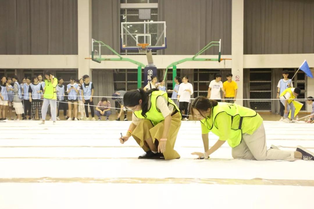 为带给刚入学的小萌新们一种新奇的体验,漫画柜 精心策划了本次“荧光定向 活力美院”迎新活动。9月16日傍晚,迎新活动如期在南校体育馆展开。 此次“荧光定向 活力美院”迎新活动由漫画柜 飞行部落培训师队承办,2018级全体新生集结完毕后,首先由学生科副科长叶筱卉老师讲话,叶老师谈到本次迎新活动是美院系列迎新活动中的一大亮点,她希望通过本次活动,18级的新生们能对美院有深刻的归属感,增强凝聚力,不畏人生的挑战。 开始挑战前,各班先进行团队建设,以班级为单位,一起天马行空起队名、想口号、绘队旗…短短十分钟,每支队伍全部建设完成,各队队长带领队员依次进行展示,气势磅礴,掌声四起。 接着,各支队伍开始进行“压气球”游戏,一个人扮演嘴吹气球,一个人扮演手将气球送至终点,两个人扮演腿抬起扮演屁股的同学压爆气球,同学们分工合作,各尽其力,在游戏中体会团结协作的快乐,也让彼此之间更加熟悉。 同学们充满热情,现场氛围极佳,完成“压气球”游戏,同学们争先恐后地冲出体育馆,开始进行定向活动。各支队伍都十分卖力,分别来到美院门口、天鹅湖广场、步青广场进行“能量悦动”、“一圈到底”、“团队悦动”游戏,一路上虽然有些辛苦,但同学们依然互帮互助,努力克服,卖力的奔跑。在人生的征程中,也希望他们有无所畏惧、努力拼搏的勇气。 不一会儿,同学们陆续完成任务返回南校体育馆。体育馆中此起彼伏“我爱温大美院”,在“激情呐喊”中同学们真正感受到了团队的力量,有满满的成就感,同时也为成为美院的一员而感到无比自豪。 休息片刻,同学们开始进行终极任务“团队巨画”,一张10*15m巨幅的画纸,每支队伍负责图画的一部分。同学们脱掉鞋子在画纸上用画笔起稿,用笔刷上色,笔刷不够用手来凑!同学们投身创作的过程中也许感到迷茫与无助,但在240余名同学的共同努力之下才有了“会当凌绝顶,一览众山小”的成就感。“没有松柏恒,难得雪中青”正是对同学们创作“巨画”的写照。 活动最后全体新生合影留念,留下了美好的瞬间。在热火朝天的氛围中,迎新活动画下了完美的句号。在此次迎新活动中,同学们体会到了团队合作的重要性,拉近了同学们的距离,相信新生们已站在崭新的起跑线上,踏上绚丽多彩的大学里程,努力奔向灿烂辉煌的明天! 恭喜以下优胜班级: 第一名 18服设3班 第二名 18服设4班 第三名 18美师3班