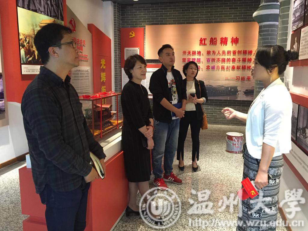 上午10时,支部一行直奔瓯江学院“党员之家”,迎面而来的中共一大会址风格的门厅立刻吸引了全体党员的注意力:崇敬而神圣,庄重严肃里满溢青春的热情奔放。瓯江学院组织部部长张青青为支部一行做了详细讲解和深入沟通。瓯江学院新型“党员之家”主要以“红船精神”为指引、以“温州精神”为内涵、以“瓯江精神”为核心,按照“洋到底土到家”、“一个都不能少”、“行散而神不散”的设计理念,通过教育区、展示区、会议区三个区域,综合展示了瓯江学院党建思想工作的宗旨信念、精神风貌与优势特色。通过参观学习,全体支部党员被该党员之家所呈现的党性教育核心、红色教育内涵、党员发展的实践特色以及特色鲜明的党建工作风貌深深折服,尤其是通过党建思想工作所搭建的各类平台,如五十小时志愿服务、大学生志愿服务认证中心、党建学院、“红翔”学院等,充分发挥了大学生党员教育的示范功能以及红船精神红色文化的育人功能。瓯江党建工作阶段成效带给支部成员的不仅是身临其境的党性教育,更是心理心灵上撼动与启发。