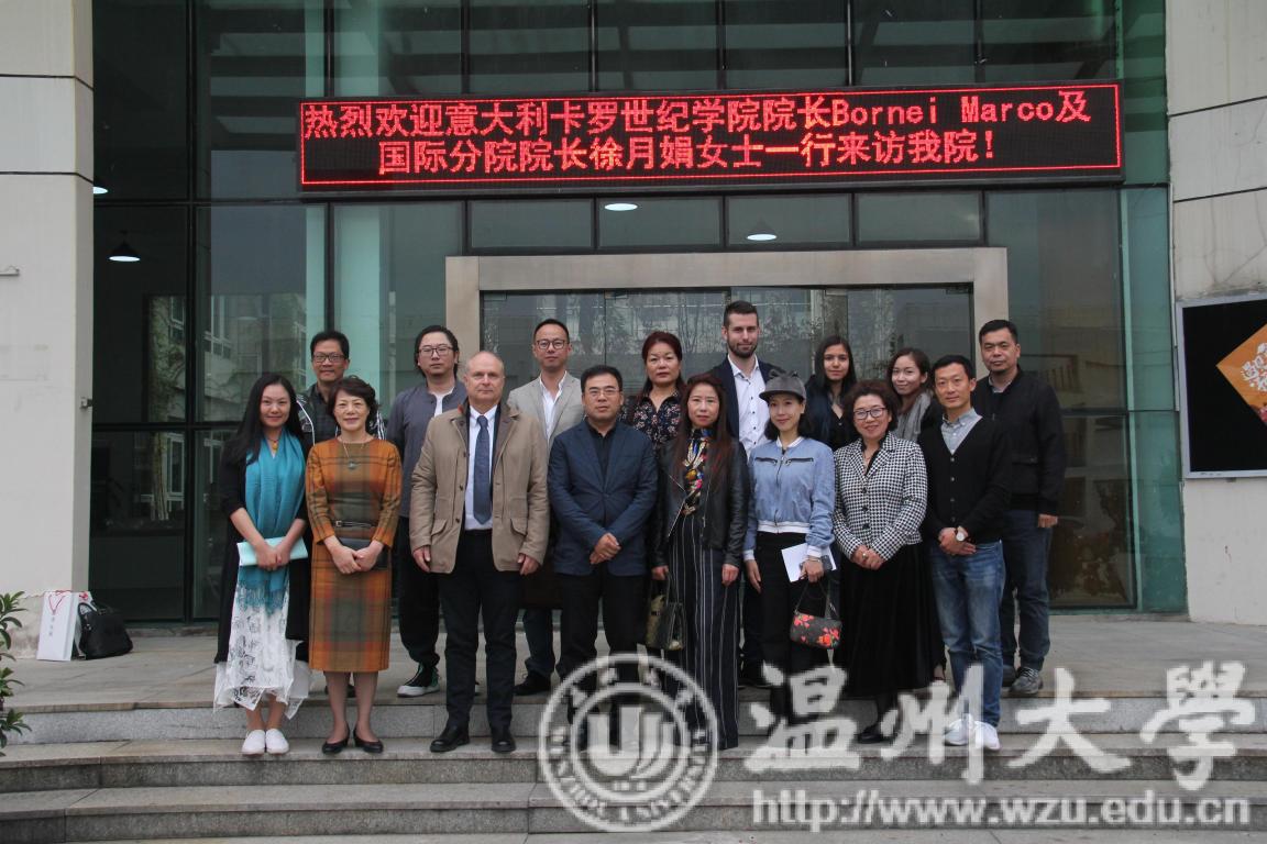 11月1日下午,意大利卡罗世纪学院院长Bornei Marco及中意企业联盟主席、卡罗世纪学院国际分院院长徐月娟一行9人来访漫画柜 ,洽谈中意合作办学事项。学院院长李运河、党总支书记张丽萍、副书记杨振海出席座谈,服装与鞋履专业系室主任等参加了会议。
