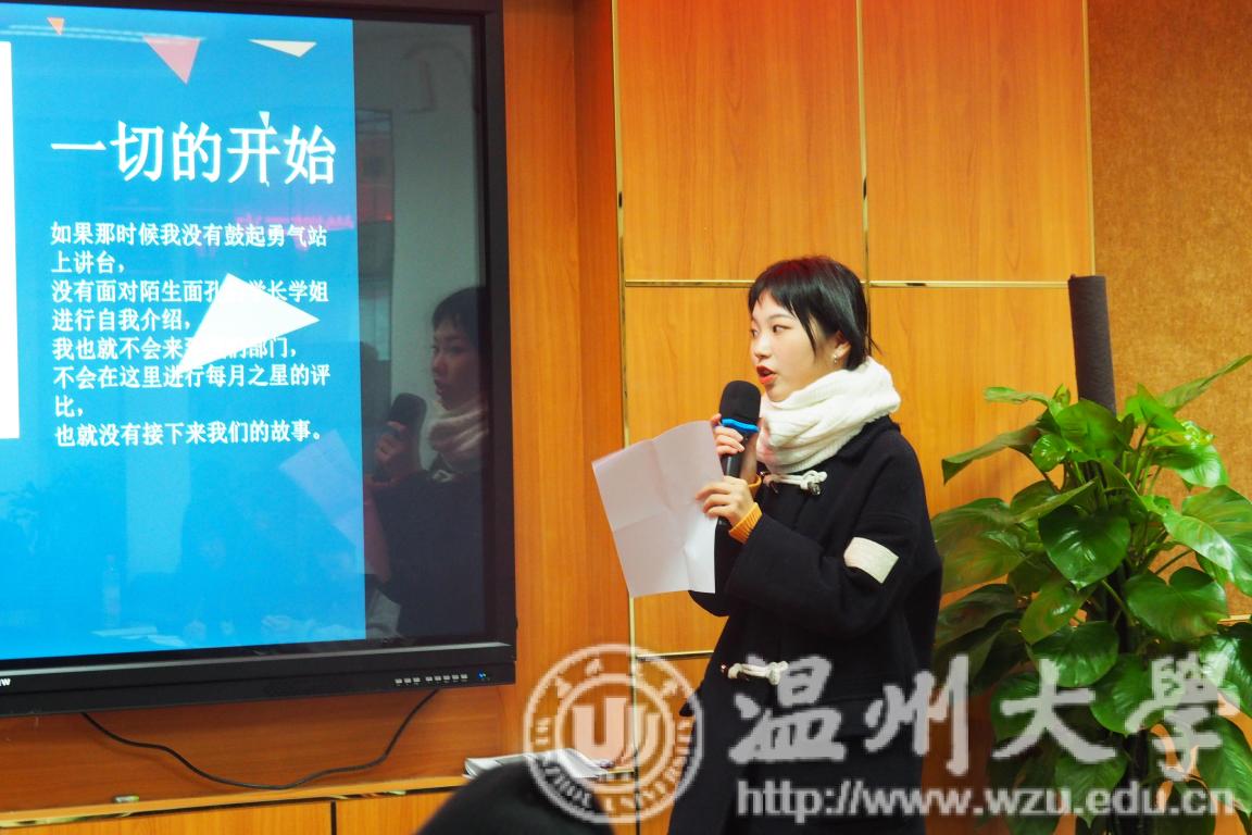 首先是上月“每月之星”的评选。各部门的干事们带着精心准备的ppt上台演讲,干事们的演讲内容逻辑性严谨,结构完整合理,层次分明,构思巧妙,引人入胜。干事们都表示自己在团学得到了成长,并在成长中学会感恩、学会团结、学会自立……学会了很多东西。接着,会议进行第二项,各部长汇报和安排工作。各部门部长报告了近期活动情况,并根据前期各活动事项、所得成果、存在问题及改进方面等内容方向布置了下一阶段工作。随后,主席团与李雪涛老师接连发言。主席团表示历经重重考验和磨砺,团委学生会各部门顺利完成了各项既定工作任务。明确认可了各个干事都在各自的岗位上倾注自己的汗水与热情,把宝贵的时间和充沛的精力奉献给了团学的各项工作。但也提出金无足赤、人无完人,在以后的工作中,我们要吸取失败的教训,认真总结成功的经验,虚心地接受院领导、老师的批评和教育,接受全院学生的监督,要更加努力的学习,不断更新自己思维空间,扩充自身的知识的阅历,改变自身的不足点,进步发挥团学工作在学院的模范带头作用,为学院献出自己的微薄之力。李雪涛老师也肯定了学生干部们近期工作的辛勤付出,不辱使命,按时保质保量完成了学院交付的任务,达到了预定目标,并表示我们团学的全体成员都应该时刻树立着“为同学服务”的意识,像认真对待每天的查早餐一样认真对待每件事,力争做好每件事,配合学院开展活动以提升团学的号召力和战斗力。