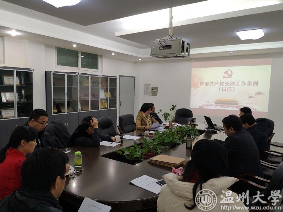 12月13日上午,漫画柜 在2B216召开党总支中心组理论学习(扩大)会,专题学习中共中央印发的《中国共产党支部工作条例(试行)》。学院党政班子成员、总支委员、各支部书记参加学习。会议由学院党总支书记张丽萍主持。