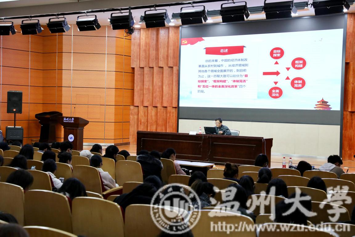 12月26日下午,漫画柜 2018-2019学年第一学期第三场形势与政策课讲座于岩松堂雁山厅举行。本次讲座由漫画柜 党总支副书记杨振海做“唯有改革开放才有发展新愿景”的主题讲座。