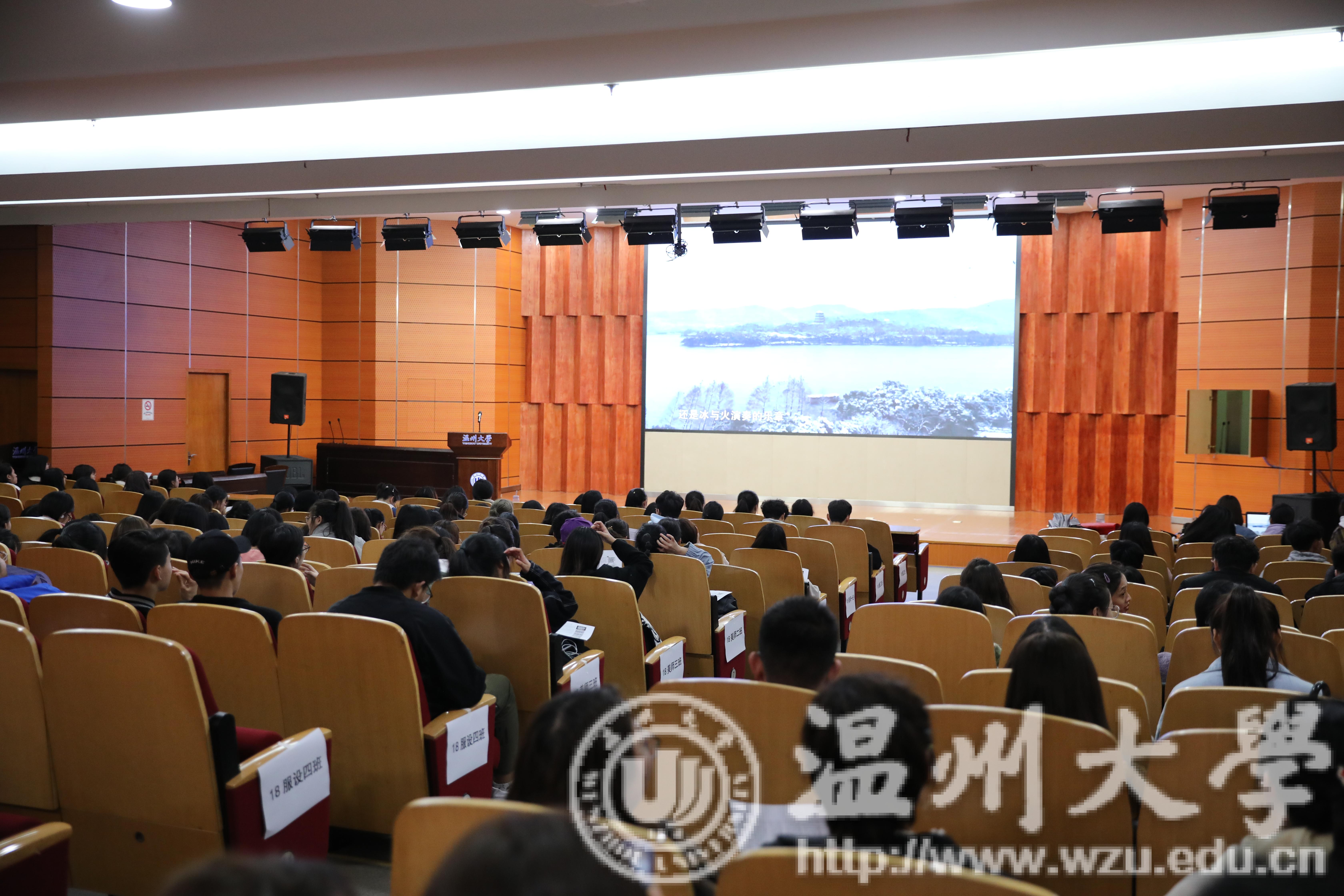 3月17日晚上,漫画柜 2018-2019学年第二学期第一次形势与政策课于雁山厅开讲,美院全体18级学生参加学习。 课程伊始,学生科李雪涛老师对参加此次课程的全体学生表示了热烈欢迎并说明了课程的主题。本次课程为观看《航拍中国》(第二季)浙江篇。整部纪录片立体化的展示了中国历史人文景观、自然地理风貌及经济社会发展,全景式俯瞰一个观熟悉又新鲜的美丽中国、生态中国、文明中国,并展示了中国大美自然景观和丰富多彩的生态环境,彰显了经济建设的辉煌成就,揭秘了“中国奇迹”背后的创新动力,与世界共同分享中华文明的博大精深。 最后李雪涛老师总结了本次课程的重点,并强调了形势政策课程的重要性。增强辨别是非的能力对提高思想政治素质、坚定不移的走中国特色社会主义道路信念具有重要意义。