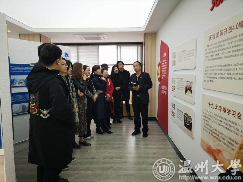 全体党员首先在张登峰董事长的带领下参观了集创星谷双创园。集创星谷双创园是一个以文创时尚消费产业为切入的生态型双创共享社区,定位于早期文创+时尚+互联网创新创业领域,创业、创客两大板块形成一园两创特色,融入具体创业项目,围绕创业/创客团队建设、文创产品设计开发等内容进行。集创星谷于2017年就被评为“温州市集中创空间”,并荣获“温州市创业孵化基地”称号,四目品牌被评为“浙江卓越创意设计机构”,荣获《中国创意设计年鉴》年度金奖、浙江省第十八届金桂杯广告创意设计大赛银奖。