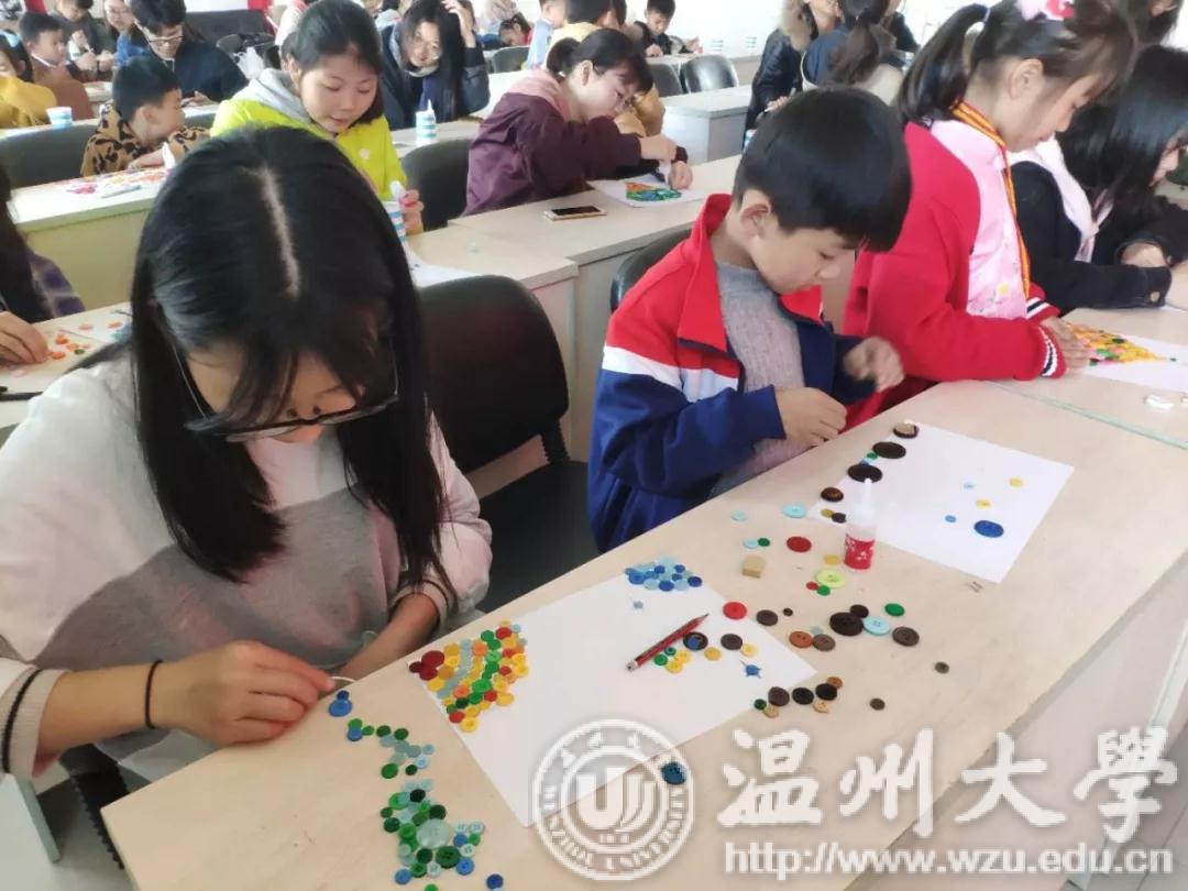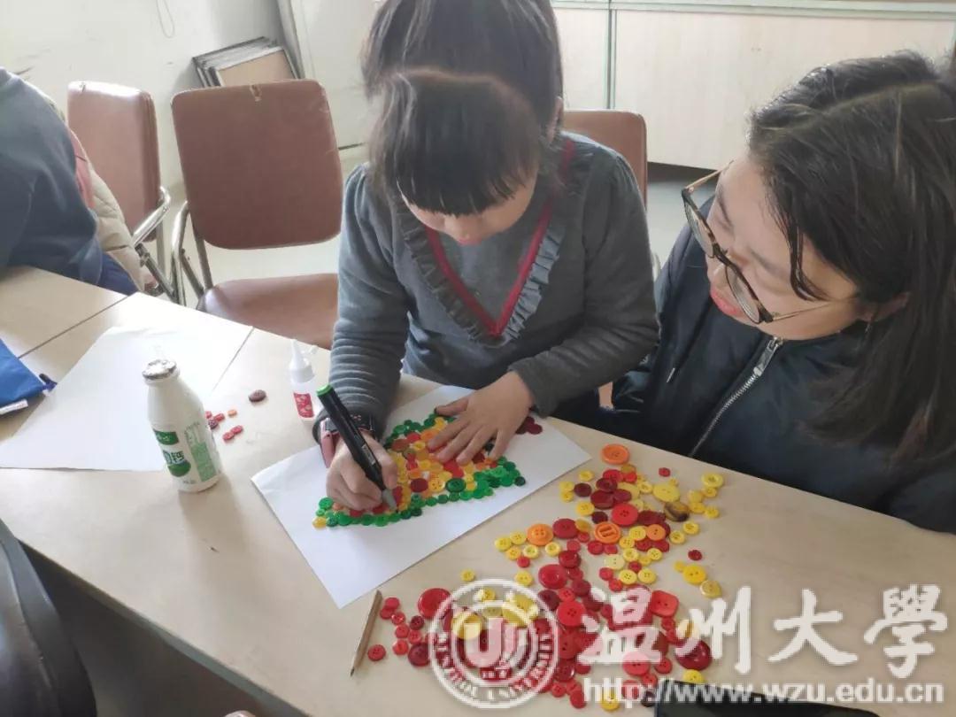 2019年3月30日,漫画柜 “艺家人”青年志愿者协会在梅泉社区的“载梦小舟·梅泉支教”志愿者活动照常举行。 今天的茶山阳光明媚,小朋友们早早的就来到了社区,我们的志愿者也携带好工具在教室里等待小朋友们的出现了。本次我们支教活动的主题是“纽扣拼图制画活动”。首先,志愿者老师播放了“大头爸爸和小头儿子”动画片里关于纽扣的情节,让小朋友们对纽扣拼图有了一个大概的了解。随后在志愿者的带领下探索纽扣拼图的奇幻世界,小朋友们强烈的探索精神和求知欲让志愿者们大吃一惊。课堂的氛围就像外面风和日丽的天气一样美好,渐渐各种有趣的想法创意就出现在了之上,有的小朋友做出了大树的形状,有的小朋友则是对海底世界充满了兴趣,而有的小朋友因为爱吃冰激凌就做出了冰激凌形状的作品。小朋友们对课堂积极参与的热情使我们又度过了这周的支教活动。 我们的支教活动也在欢声笑语中走向了结束,通过本次活动,我们希望小朋友能够拓展思维,用自己天马行空的想法把它们变为可能。