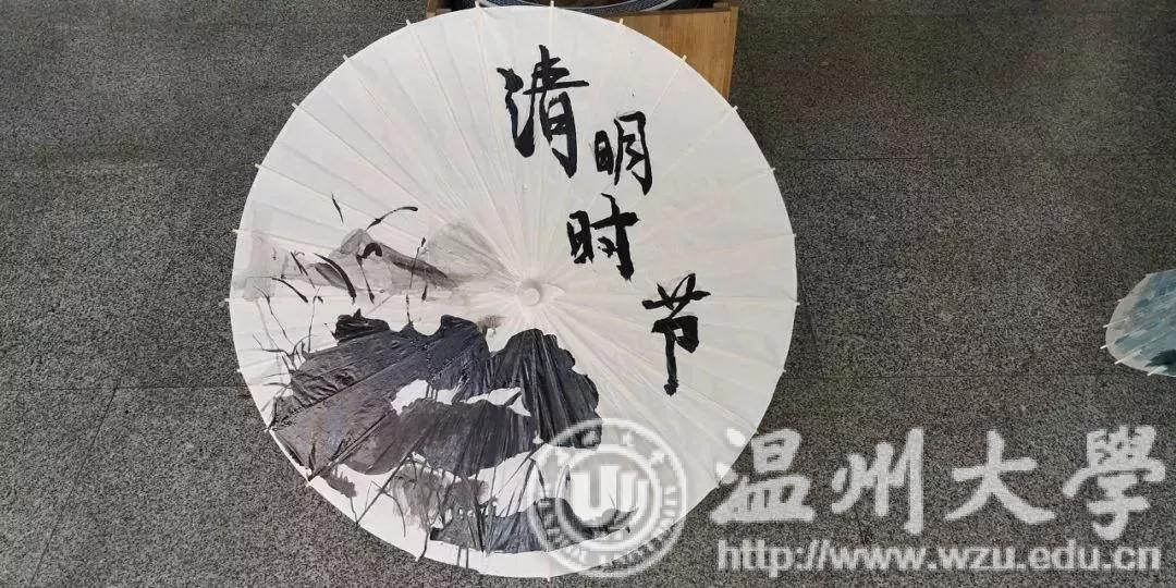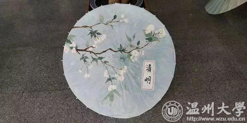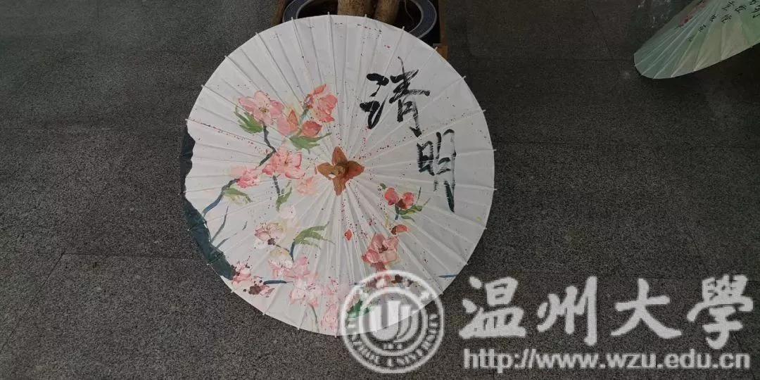 经过一番紧张又有趣的清明节知识竞猜后,同学们挑拣了自己要用的颜料和工具,寻一处空间,便三五成群的开始在伞上勾勒自己的图案,有的参赛组在细心地描绘起自己的草图,而有的参赛组却是在泼墨挥毫,肆意豪迈。各处情形不一而足,色彩渐渐渲染了这一方天地。随着画笔的腾挪转换,纸伞上的各个参赛组的画作渐渐明晰,或细腻婉转,或写意风流,或简约可爱,风格万象,让人有些应接不暇。