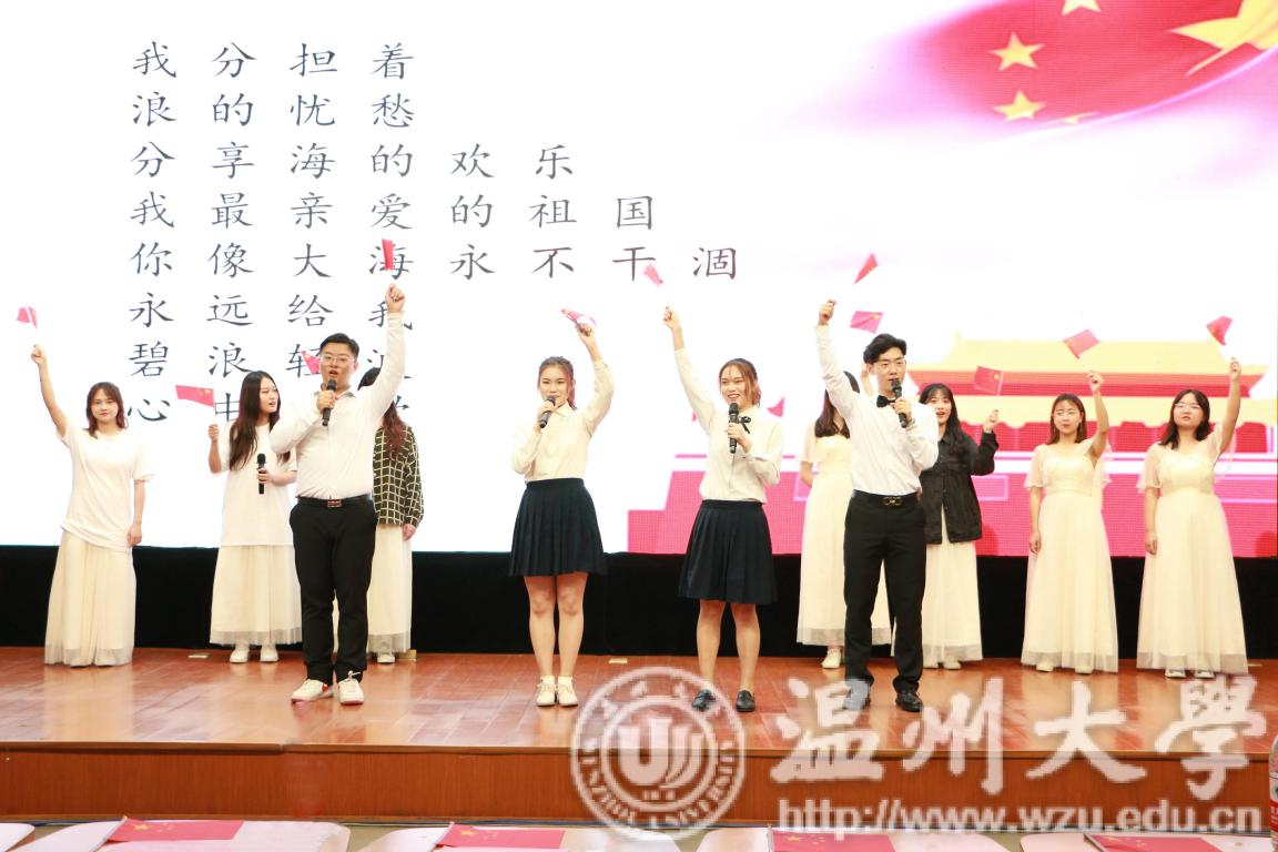 最后,为迎接祖国70华诞,全体师生手中挥动国旗,共同献唱《我和我的祖国》,大会圆满结束。