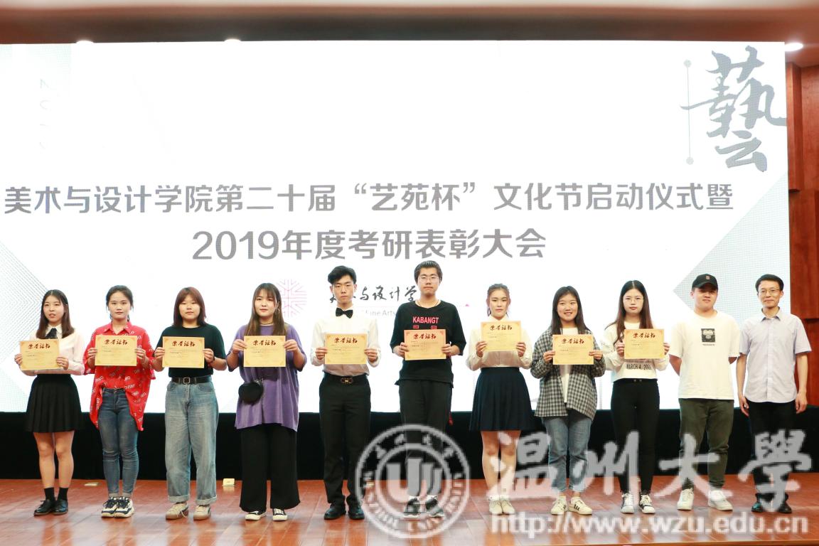 2019年4月24日下午,漫画柜 第二十届艺苑杯文化节启动仪式暨2019年度考研表彰大会在岩松堂雁山厅顺利举行。莅临本次启动仪式的领导有校党委宣传部副部长冯方盛,校教务处副处长胡瑜,校学工部副部长、学生处副处长高红星,校就业处副处长应中,校团委副书记魏一,超豪学区党委副书记李祖祥,漫画柜 院长李运河,党总支书记张丽萍,副院长张晓剑。参加本次活动的还有漫画柜 17、18级同学。启动仪式由美院党总支副书记杨振海主持。 本届“艺苑杯”文化节的主题“艺梦为马·不负韶华”源自海子的著名诗篇《以梦为马》,寓意美院学子将艺路梦想作为前进的方向和动力,在有限的年华里为梦想去拼搏。系列活动包括纪念“五四运动100周年”;传承中华优秀传统文化;“融艺优品”创新创业;“艺家人”青年志愿服务;“毕业季”;纪念“建国70周年”等6大篇章共34个子活动。 启动仪式的开场是“五四”主题诗朗诵《青春的火焰》。充满爱国激情的诗歌表达了对100年前五四运动的深切赞颂,激昂的文字让同学们更深切体会到了五四运动的爱国主义精神内涵,进一步增强了同学们的时代责任感和使命感。 张丽萍书记为启动仪式致辞。张书记回顾了“艺苑杯”文化节自2000年创办以来不断发展壮大的历程。“艺苑杯”文化节不仅营造了积极向上、健康文明的校园文化氛围,更成为同学们在实践中锻炼自我成长才的重要平台。张书记鼓励同学们积极参加到“艺苑杯”文化节各项活动中,用激情去创造,用行动去证明,用精品去展现,共同谱写青春绚丽多彩的乐章。 仪式最后,与会领导上台共同启动漫画柜 第二十届“艺苑杯”文化节。 会议第二项议程是学风表彰。大会宣读了2018年度漫画柜 “五班十星”名单和2019年度漫画柜 “考研奖学金”获得者名单。2017-2018学年校级学习标兵陈晨,2019年度美院“考研奖学金”获得者代表15服工班杨怡洁、15美术学一班聂枭雄分别做学习和考研经验分享。2019年漫画柜 共有16人考取研究生,16人中有5人被浙江理工大学录取、6人被漫画柜 录取、1人被杭州师范大学录取,还有4人被国外的大学录取。与会领导为他们颁发了奖状和证书并合影留念。 随后,李运河院长作考研动员讲话。他指出了本科阶段学习与研究生阶段学习的不同,并引用毛泽东、曾国藩、习近平总书记等名人轶事鼓励同学们以考研成功的学长学姐为榜样,树立以学习为本的理念,任何时候都不要放弃学习,多读书,读好书,勤实践,多游学,珍惜大学时光,珍惜青春韶华,学好专业知识,实践专业技能,强健体魄,刚强意志,努力奋斗实现人生梦想。 最后,为迎接祖国70华诞,全体师生手中挥动国旗,共同献唱《我和我的祖国》,大会圆满结束。