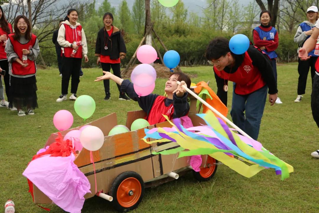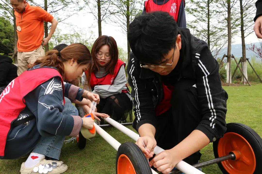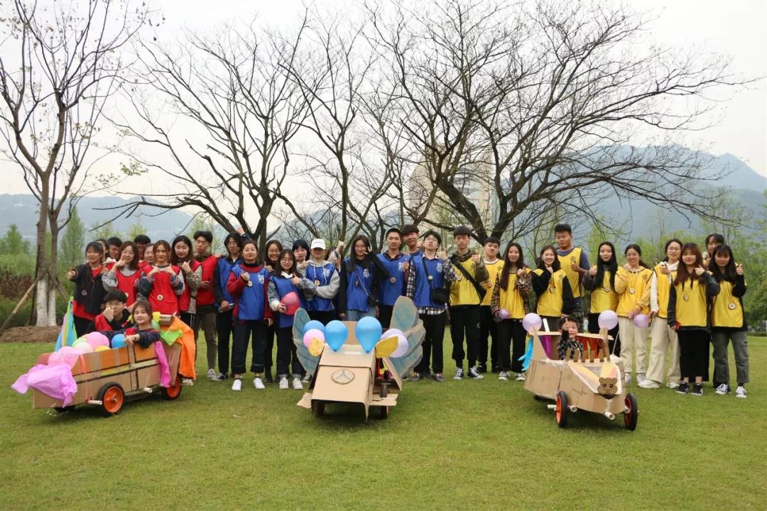 4月14日,2018-2019学年第二学期第二次团干培训在大学生活动中心如期举行。本次培训以户外素拓形式开展。 活动第一项是“穿越火线”,每组十一个成员,两个甩绳,剩下九个成员需要依次不间断的穿越长绳,并在最后手拉手一起穿过。比赛第一名的队伍能在最后造车环节中得到更多的材料。起初,干事们在面对无情的长绳时面露难色,但在队友的鼓励下,克服恐惧,摆起了阵型,当绳子甩到高点的时候一个接着一个的穿越,九人都穿过后再排成一字形队伍倒数三二一同时穿越长绳,完成了挑战。第一名更是取得了13秒的好成绩。这个项目让干事们能够充分信任队友,获得勇往直前的动力。 接着干事们开始了最终大比拼——造车。首先要确定每个队的驾驶员、车模、讲解师。一开始干事们显得有点手足无措,无从下手,但在每个队队长的指挥下慢慢的步入了正轨,干事们分工明确,有条不紊,一部分人做车底座,另一部分人做车身。 经过两个多小时的制作,在拼拼合合、缝缝补补中三个队的车子都顺利完成了,每个队的车子都各具特色,外观绚丽的同时又十分牢固。最后三队分别介绍了自己的车子并经过竞速抉择出第一名。都说团结力量大,干事们在此次活动中深深的体会到了这点。 尽管过程很辛苦,但却十分有意义,干事们在游戏中学会团结,学会分工,学会信任;收获快乐,收获友谊,收获阅历。希望在之后的日子里干事们也能秉承活动的精神,勇往直前,成长的路上势如破竹,乘风破浪。