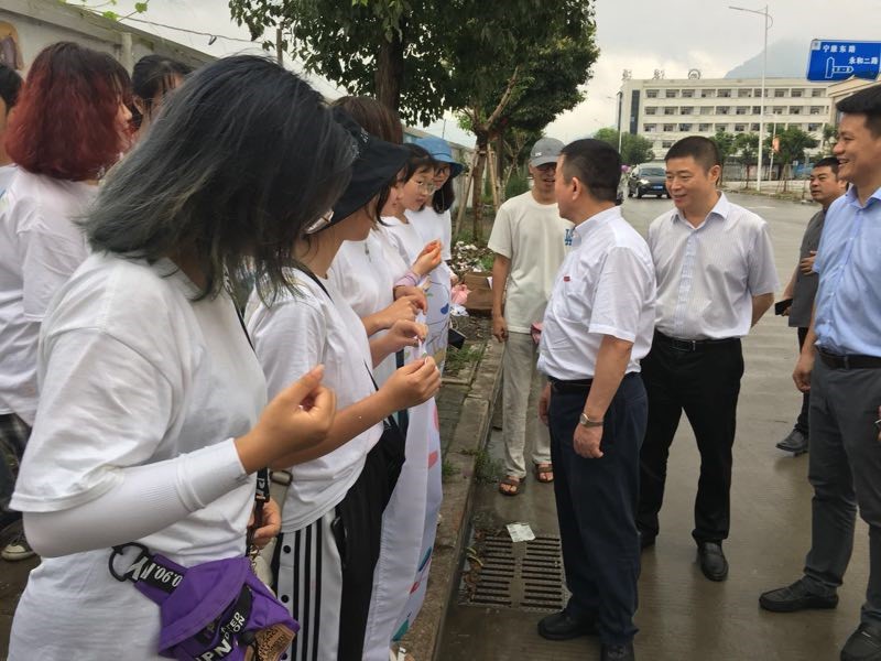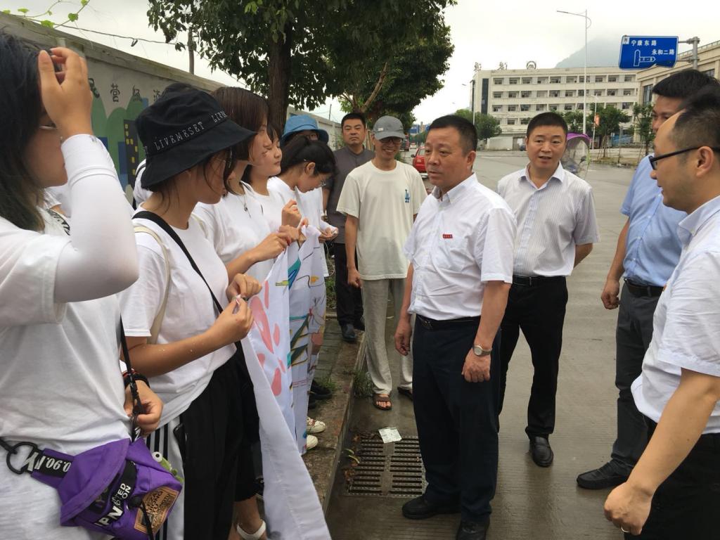 7月14日上午,漫画柜 党委书记谢树华,乐清市委常委、宣传部部长范晓东一行慰问正在乐清市宁康东路金海湾花苑附近开展“艺绘”暑期社会实践活动的漫画柜 师生,党校办主任蔡联群、漫画柜 党委书记叶正飞、副书记杨丽君、校团委副书记易招娣、副书记丁强、党校办督办科科长陈赞安、乐清市城东街道办事处相关同志陪同慰问。