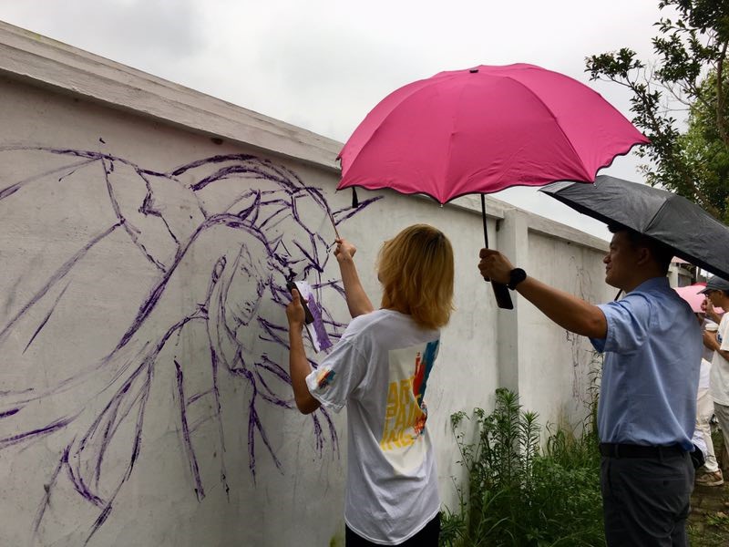 据了解,“艺绘”暑期社会实践队,成立于2017年4月,它服务于温州乐清城东街道,至今已有两个年头。实践队结合城区整体风格,对破旧墙壁进行规划设计,采用老百姓喜闻乐见的绘画手法为质朴的城区增添活力,使用鲜明的色彩引起人们对文明环保的关注,用形象且富有传统文化特色的彩绘唤起人们对社会主义核心价值观的认识和非遗文化的重视。