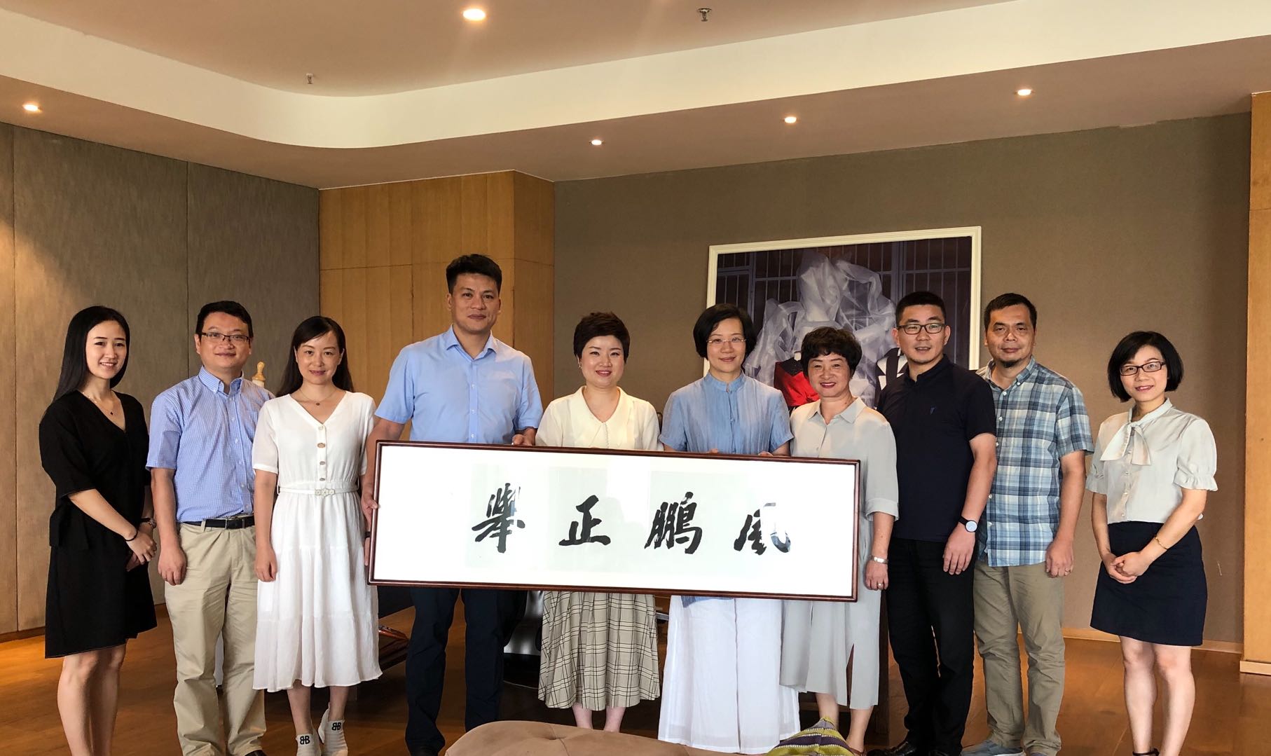 拜访老领导篇 为更好地传承学院优良传统、谋求学院新一轮改革发展,今年暑假,漫画柜 院长谢子静、党委书记叶正飞带领新班子成员一行5人,顶着烈日、冒着酷暑分别拜访了叶玉昶教授、张如元教授两位学院退休老领导。 (与叶玉昶教授合影) (与张如元教授合影) 拜访期间,谢子静代表学院慰问两位老领导,感谢老领导一直以来对学院发展的关注与支持,并向老领导请教学科发展、专业建设、师资队伍建设、学生工作等方面发展相关的问题。两位老领导对充满朝气的新班子寄予厚望,在专业教学、师资队伍建设、人才培养等多方面给予诸多建议,要求班子成员政治上过硬、经济上廉洁、专业上抓两头带中间、科研上鼓励创作,班子成员要团结一心、脚踏实地为学院师生服务。 (在叶玉昶教授家中交流) (叶玉昶教授现场讲授美育课) (在张如元教授工作室交流) 走访企业篇 近日,学院院长谢子静、党委书记叶正飞、副书记杨丽君、副院长胡文超、副院长顾任飞及服装相关专业陈明艳、钟信群、叶婷等教师一行9人,来到浙江风笛服饰有限公司龙湾区滨海园区总部开展调研活动,风笛公司董事长冯益跃女士、人力资源部经理吴朝晓女士热情接待并全程陪同。 (与浙江风笛服饰有限公司负责人合影) 调研期间,新班子成员与风笛企业高管一一介绍并认识,双方谈过去、话未来,围绕着进一步深化实践教学探索、实践型复合型人才培养、大学生创新创业项目的校企合作培育、以党建学院形式开拓校外党建工作、打造学生社会实践队伍品牌、实现学生就业与企业招聘的共赢等诸多方面进行了深入探讨和交流。