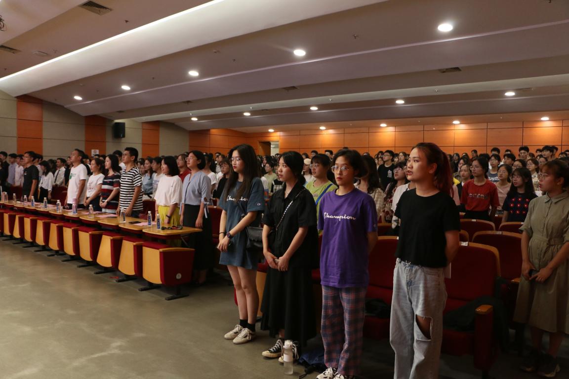 随着庄严的国歌声响起,美院2019级新生开学典礼正式开始。