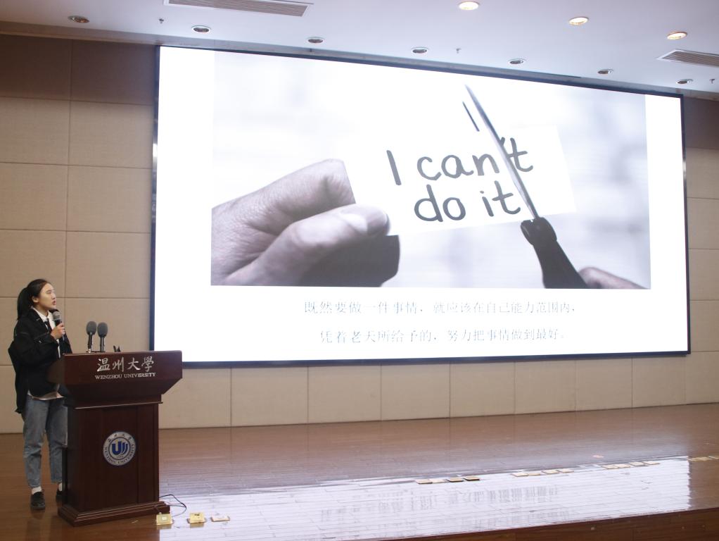 最后,学院党委副书记杨丽君老师对所有参赛班级和个人给予了积极的肯定。同时,杨丽君老师对美院学子提出了三点期许:第一,遵规守纪,做优秀温大人;第二,扎实学习,做优秀美院人;第三,积极进取,做最优秀的自己。相信各位同学将以此次参赛选手为榜样,严于律己,积极向上,相信我们美院也会如杨书记所言,莘莘学子成栋梁,芬芳园丁名四方,共创美院新辉煌。