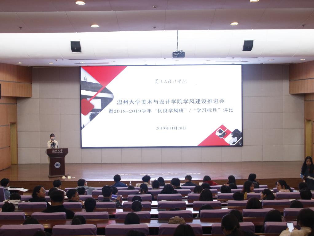 为加强美院学风建设,2019年11月20日晚,漫画柜 学风建设推进会暨2018-2019学年“优良学风班”和“学习标兵”评比活动于育英图书馆报告厅顺利举行。出席本次评比活动的评委有漫画柜 党委副书记杨丽君老师,学工办主任杨鹏老师,教学科阳自杰老师,辅导员杨永利老师,学生会主席祝晴同学以及各班学生评委。 本次共有7个班级和10位选手参加“优良学风班”及“学习标兵”评比。首先进行的是“优良学风班”评比,各参赛班级从学习风气纪律、班级特色、班级荣誉和团日活动等多个方面,向我们展示了一个个团结友爱、积极向上、学习氛围浓厚的大家庭。紧接着是学习标兵评比,有了前面优良学风班的激烈竞争,各位学习标兵参赛选手也毫不示弱。每位参赛同学都纷纷展示了个人所长、科研成果、社会活动和各项荣誉,并表达了自己对未来的期望。各位学霸们的精彩展示,让现场发出一阵阵热烈的掌声,他们让我们感受到了美院优秀学子们锲而不舍,一丝不苟的学习态度,勇往直前的拼搏精神和一颗温暖善良的内心。 最后,学院党委副书记杨丽君老师对所有参赛班级和个人给予了积极的肯定。同时,杨丽君老师对美院学子提出了三点期许:第一,遵规守纪,做优秀温大人;第二,扎实学习,做优秀美院人;第三,积极进取,做最优秀的自己。相信各位同学将以此次参赛选手为榜样,严于律己,积极向上,相信我们美院也会如杨书记所言,莘莘学子成栋梁,芬芳园丁名四方,共创美院新辉煌。