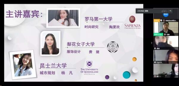 在学院精心安排的 “国外留学知多少”留学专场交流会和“国内院校备考攻略”国内考研专场交流会上,八名导师精心准备、重磅分享自己的申请出国读研和国内考研的宝贵经验和心得,也收获了学弟学妹的诸多点赞。受聘为“留学校友学长导师”的三位校友,分别是留学意大利罗马第一大学的陶夏欣、留学韩国梨花女子大学的费婕和留学澳洲昆士兰大学的杨凡,在当前疫情严峻的留学境况下,她们克服距离和时差上的影响,精心准备,从留学生活、留学优势、留学申请经验和注意事项等方面为同学们提供了有益的经验,他们也分别担任温大美院学子在欧洲、韩国、澳洲的留学校友学长导师,为日后有留学意向的同学提供更多的渠道和联络指导帮助。