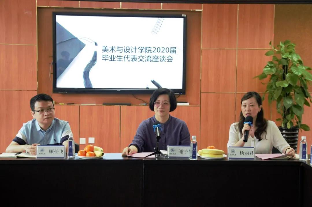 伊始,毕业生代表交流座谈会进入第一项议程。与会11名优秀毕业生们发言畅谈对大学生活的感悟,总结在校求学的丰硕收获,表达了对母校悉心栽培的诚挚感谢、衷心祝福与眷恋之情,也展望了未来的毕业规划与憧憬理想。其中17级课程教学论专业的研究生安亚锋表示自己对于温大有着深厚的感情,毕业后于欧江学院任职辅导员,也会时常回来看看美院这个大家庭;18级学科教学专业的研究生黄娇表示虽然短短两年时间但却有不少的收获,并且未来也将在教育学院任职辅导员继续努力为母校作出贡献;16级服装与设计专业的毕业生陆安分享了自己创业道路上的成长经验并对专业老师的指点与帮助表示诚挚感谢;16级美术师范专业的毕业生胡瑞明交流分享了自己的考研心路历程上的总结感想……座谈会上,杨唯、马婷婷、刘子彰、程子鹏、谢遵宪、徐宏博、胡梓涵等毕业生代表也先后发言。毕业生们纷纷分享了母校带给自己的烙印和打下的基础,感言中饱含对母校的深挚情感,表示在温大美院学习的经历是人生中宝贵的记忆和经历,值得用一生去收藏体悟,在将来的学习生活工作中将始终保持奋发有为的精神状态,不辜负老师们的培养和教育,用实际行动创造美好未来。