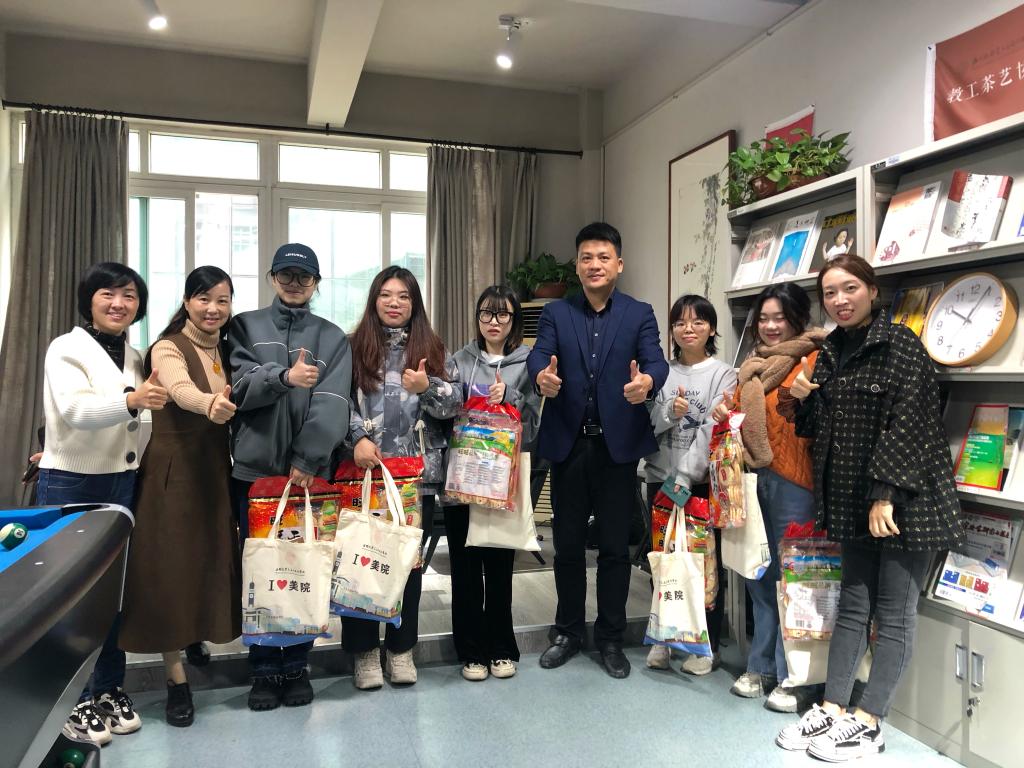 为鼓励美院考研学子积极迎考,坚定考研信心,11月24日上午,漫画柜 开展了为考研学子发放“考研加油包”活动。学院党委书记叶正飞、副书记杨丽君、副院长胡文超、顾任飞及学工办老师们参加了本次活动,与考研学子齐聚一堂,为他们加油助力。 学院领导亲切慰问考研学子 活动开始,学院领导亲切慰问考研学子,希望他们坚定信念,努力奋斗,坚持到底。同时提醒考生在冲刺阶段调整好心态,劳逸结合。随后各位老师向考研学子派发精心准备好的“考研加油包”。“考研加油包”包含文具套装、素描本、状元糕、脐橙、明信片、旺旺雪饼等极具寓意的礼物。 考研加油包 学院领导老师与考研学子齐聚一堂,为他们加油助力 "感谢学院为我们提供的指导和帮助,我们一定会沉着应考,争取成功上岸!”鞋靴班的祝晴同学的话语说出了大家的心声。近年来,学院持续开展为考研学子送温暖活动,让美院学子感受到家一般的温暖和关怀。